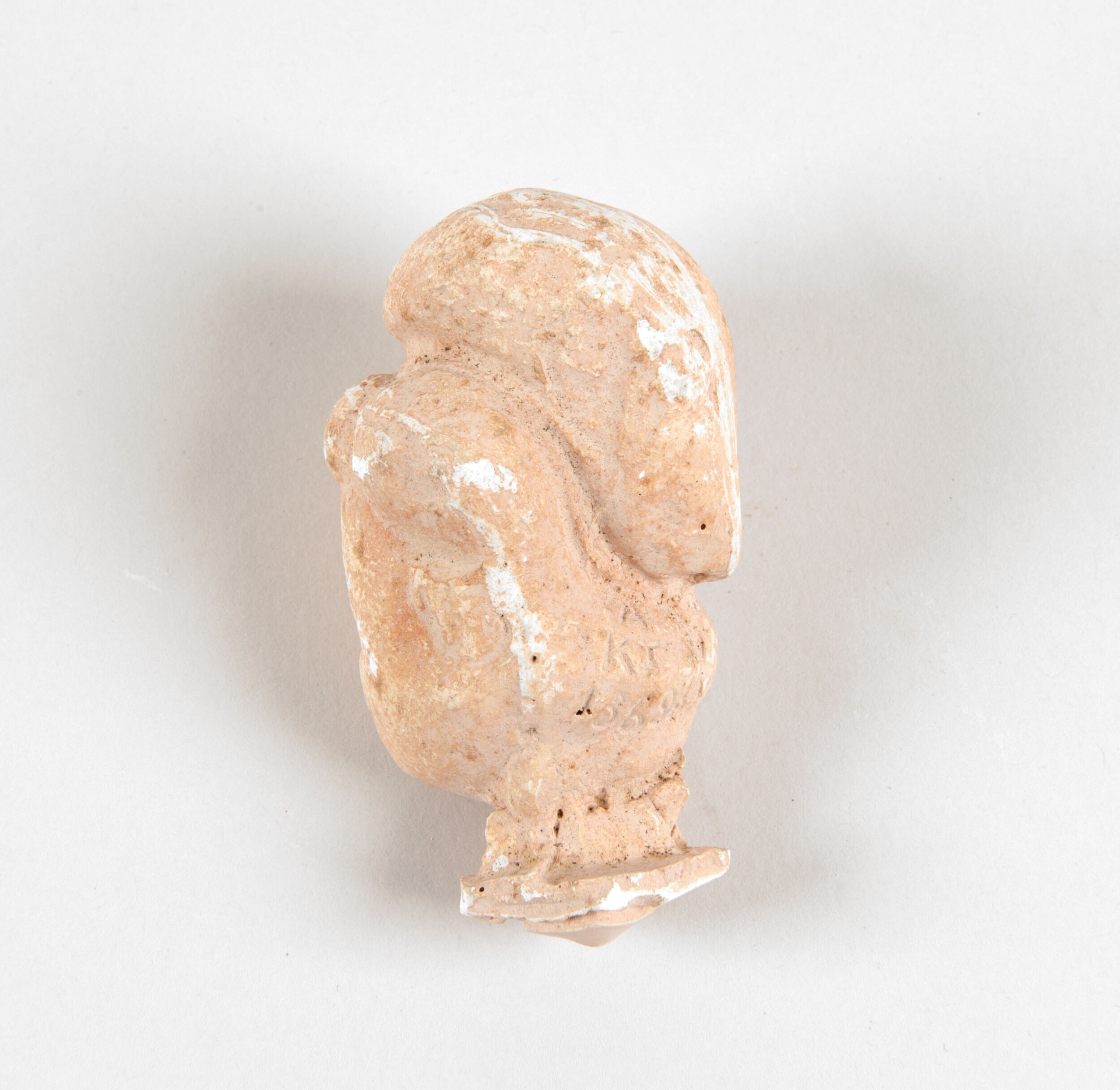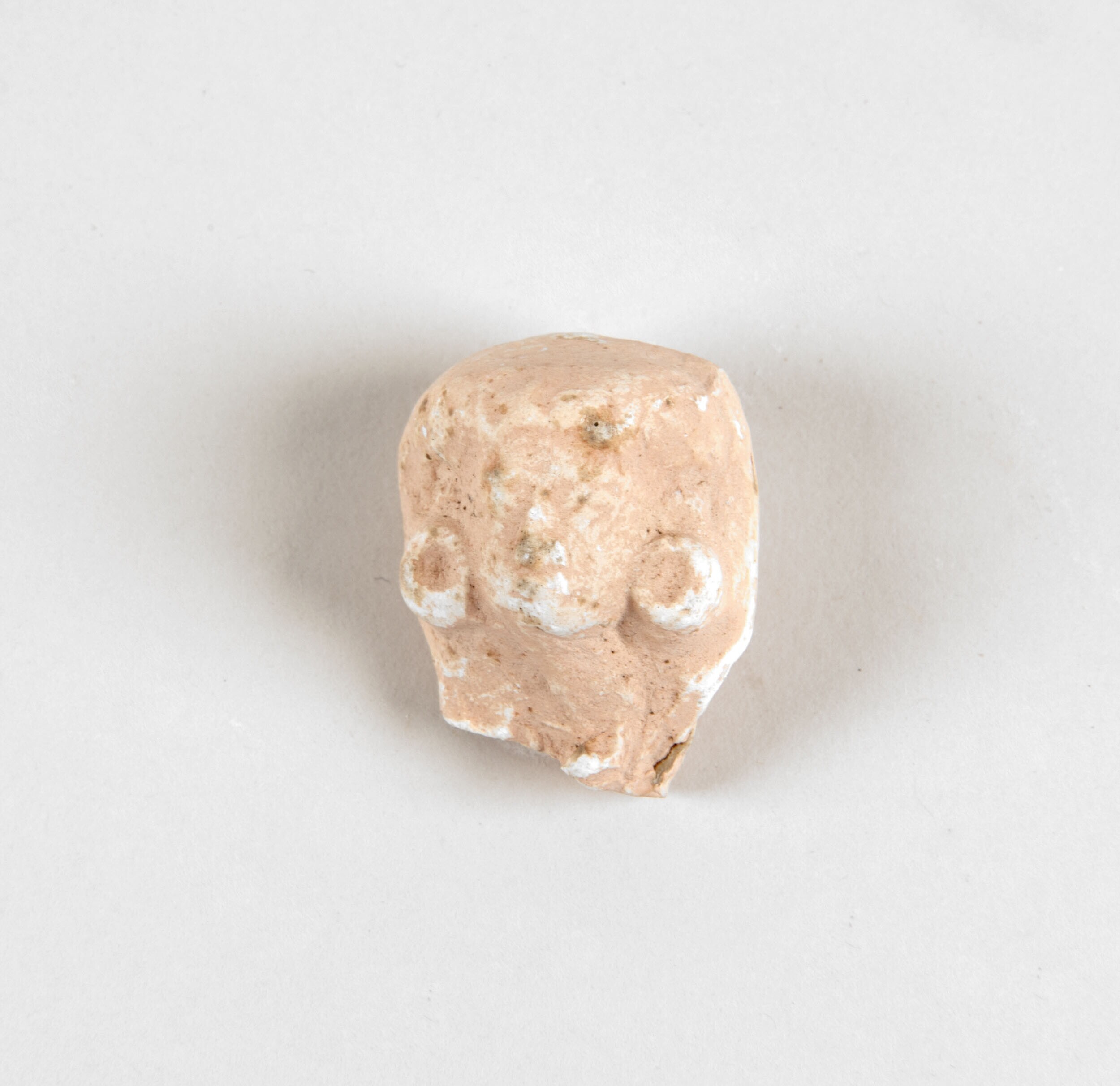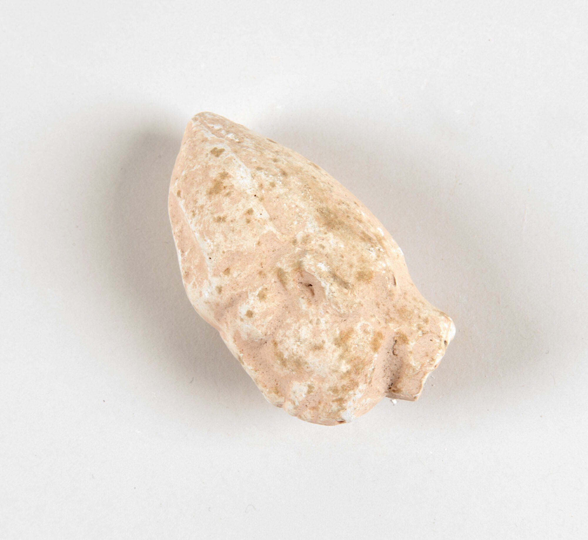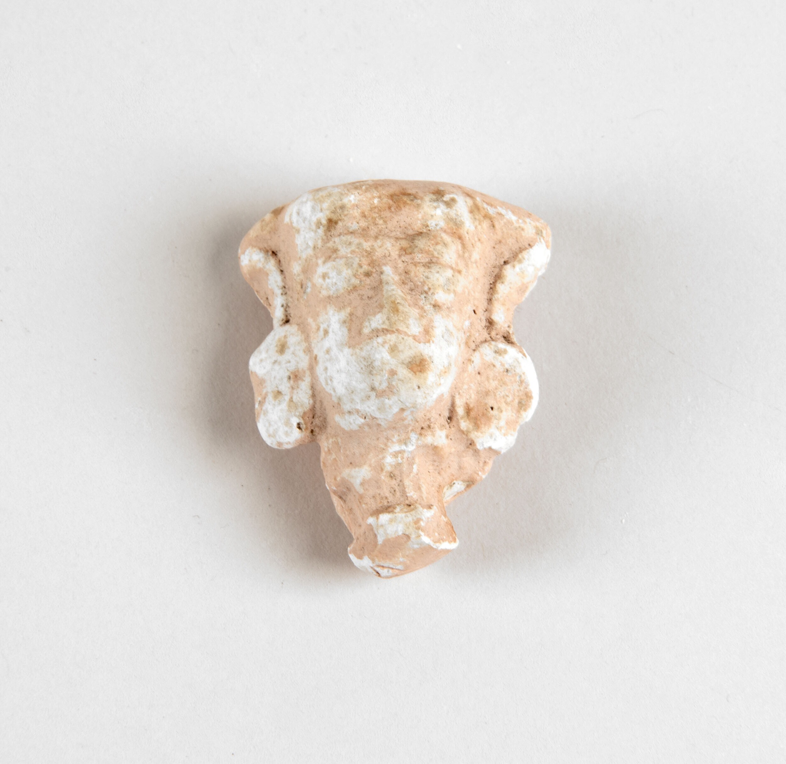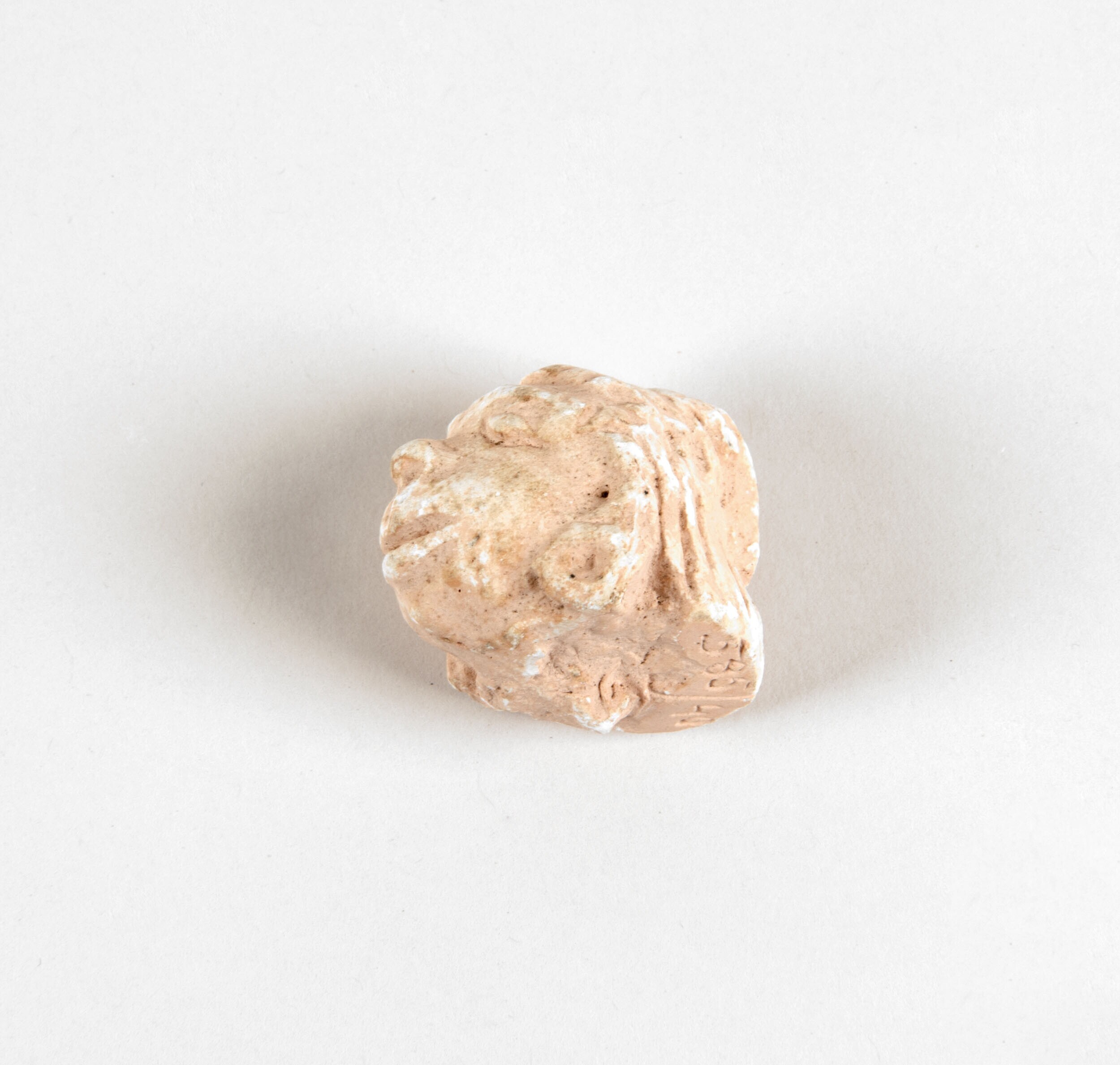 Gipsafgietsel Terracottakop met puntmuts en kleine s...