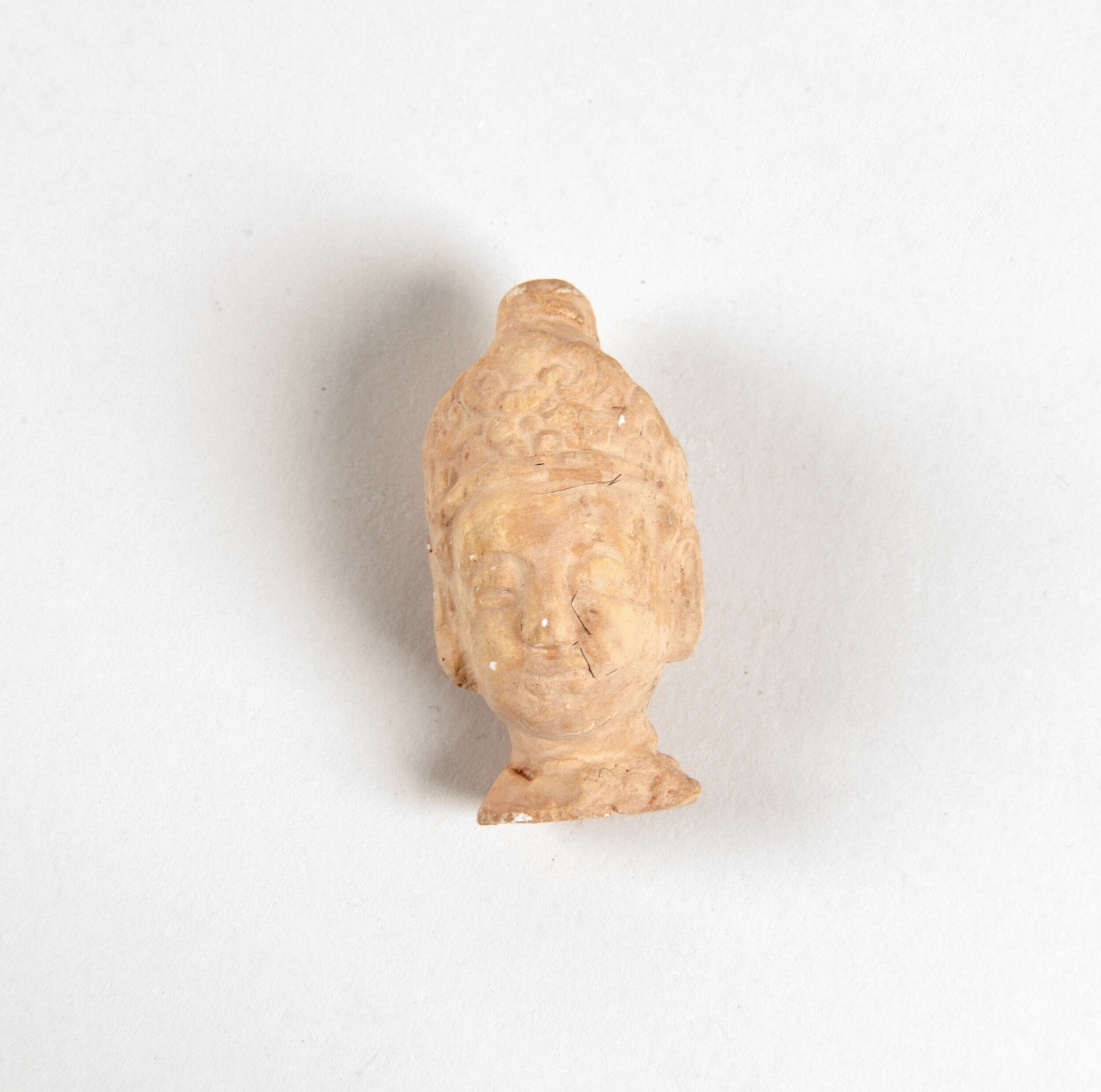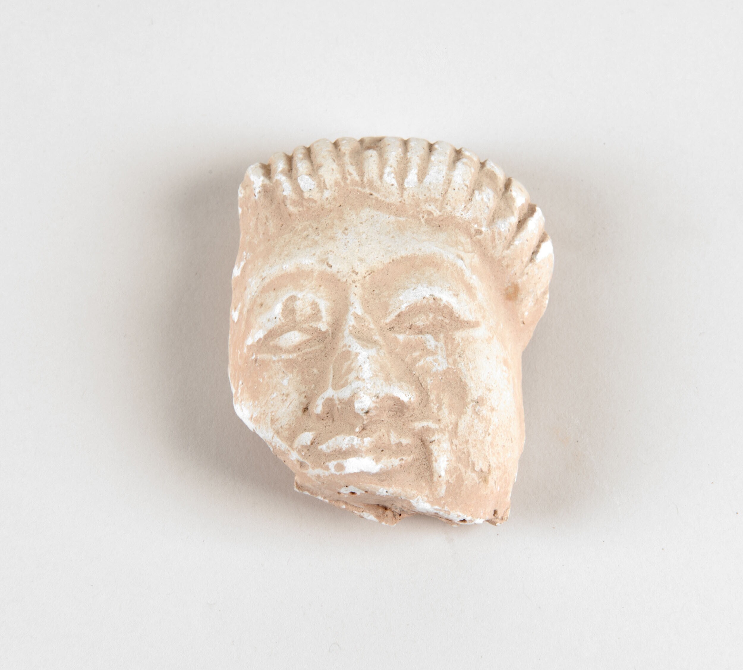 Gipsafgietsel terracottakop met potsierlijk gebundel...