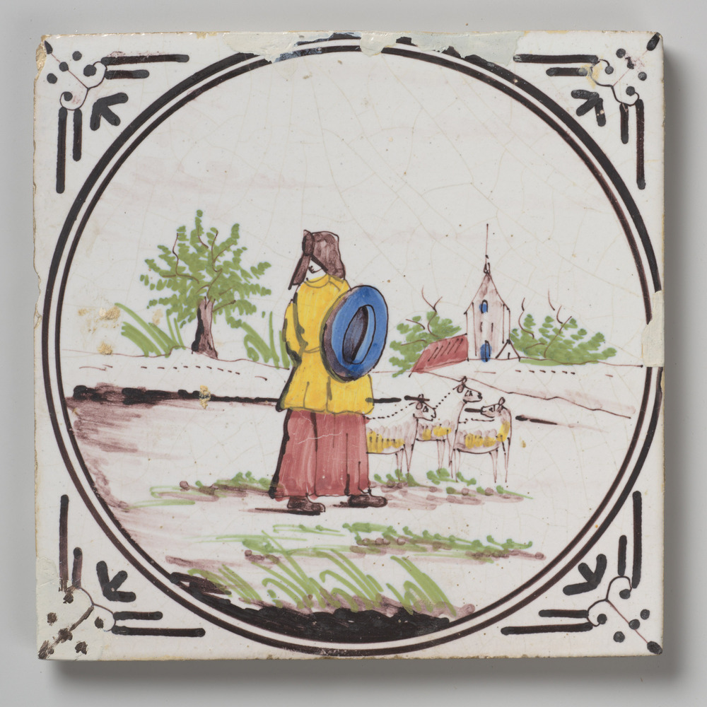 tegel van aardewerk met tinglazuur, voorstellende: h...