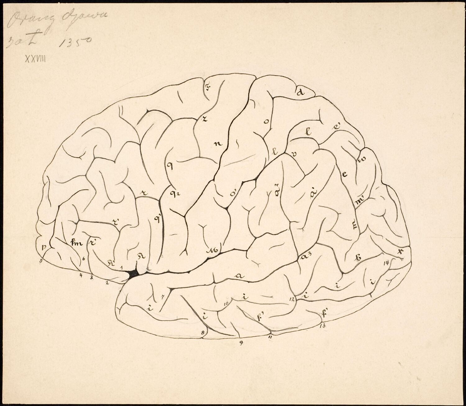 Anatomische tekening van een hersendeel van een Javaan