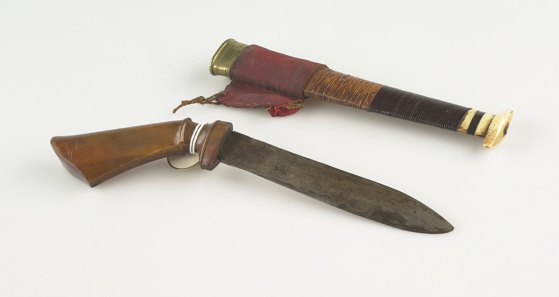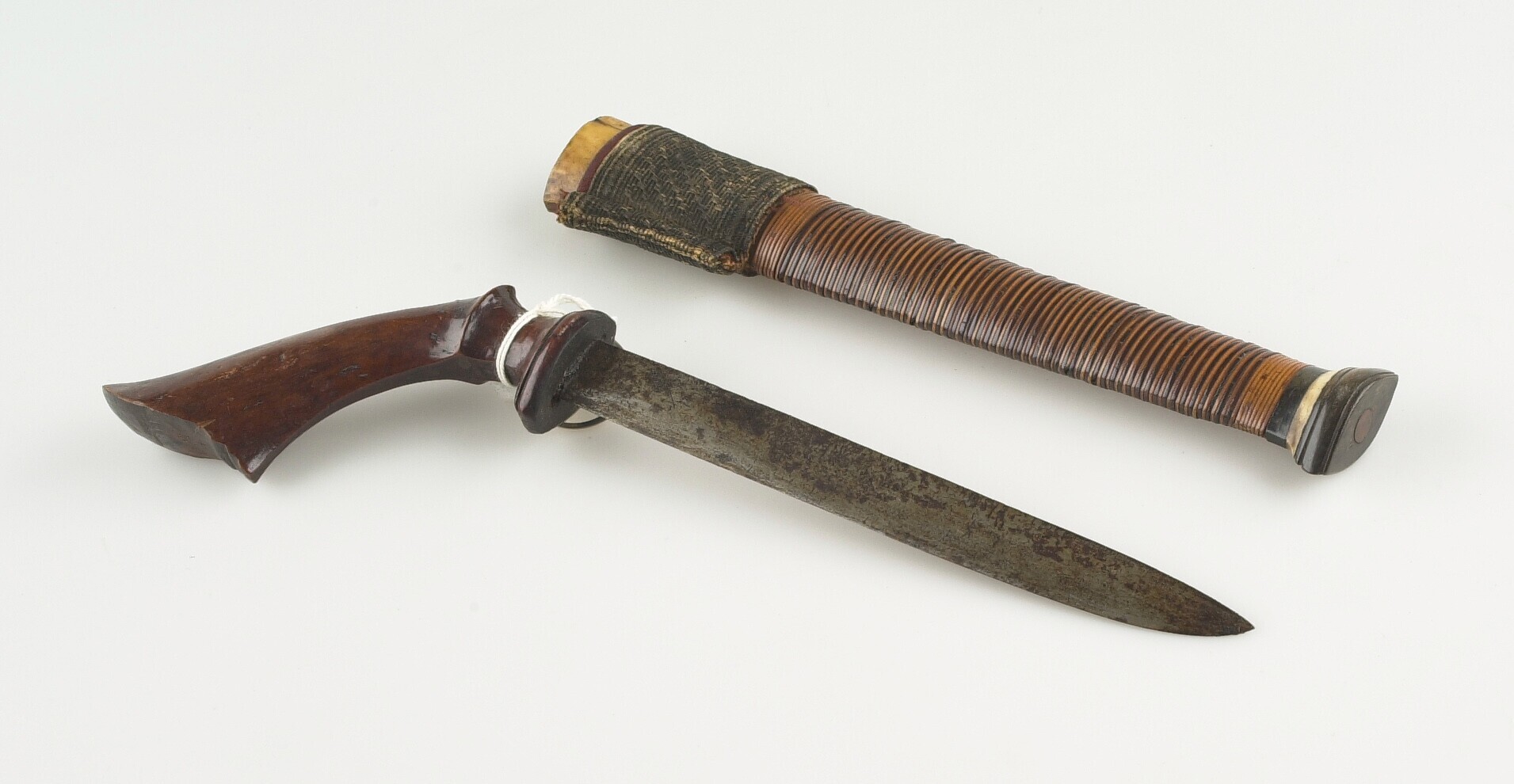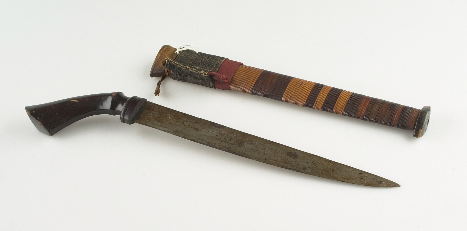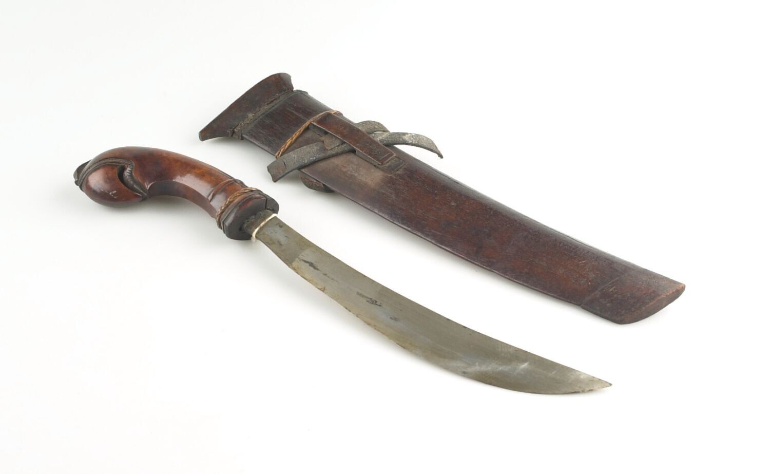 Kapmes in houten schede, voorzien van twee gevlochte...