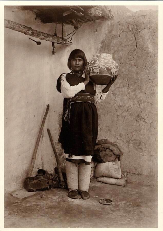 Ansichtkaart: Mary houdt een 'Olla' vast, Acoma pott...