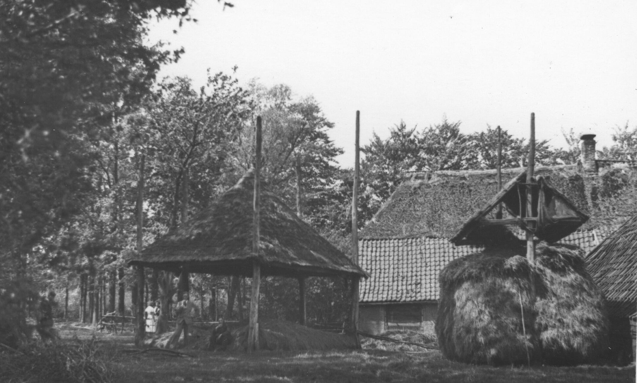 Boerenerf met hooibergen, De Kraats, 1936 (zwart-wit...