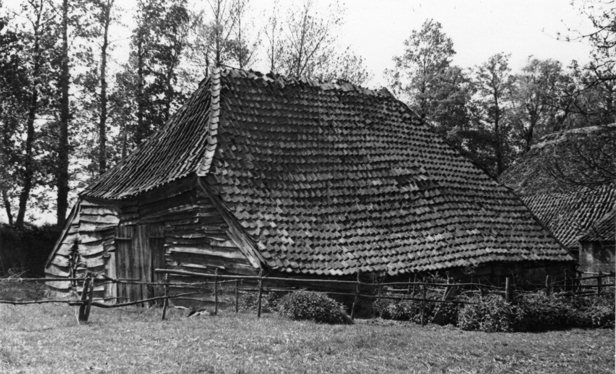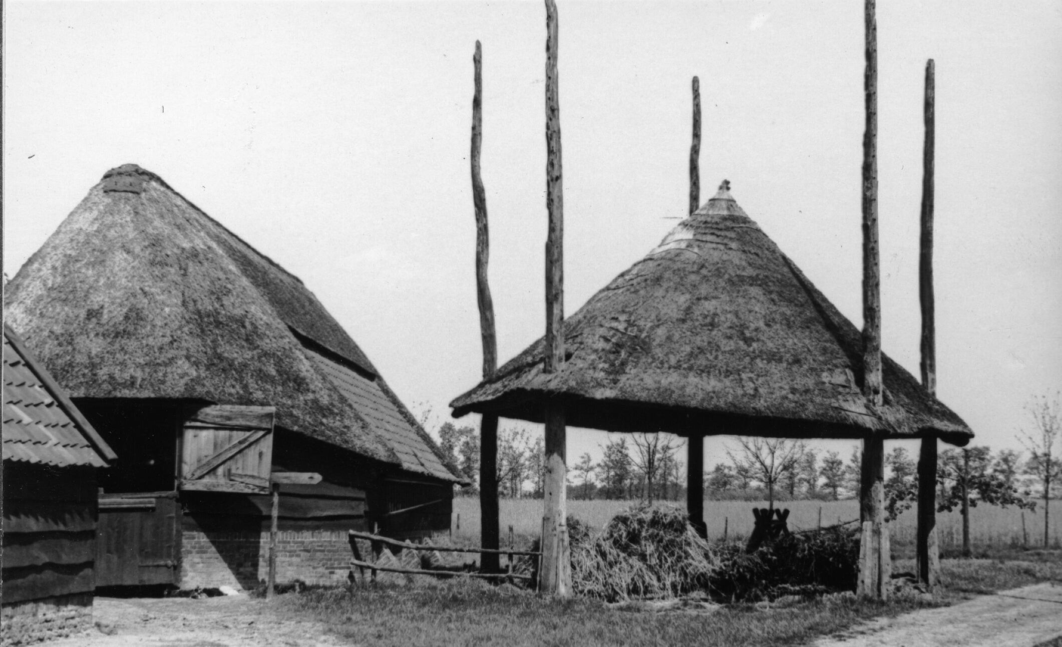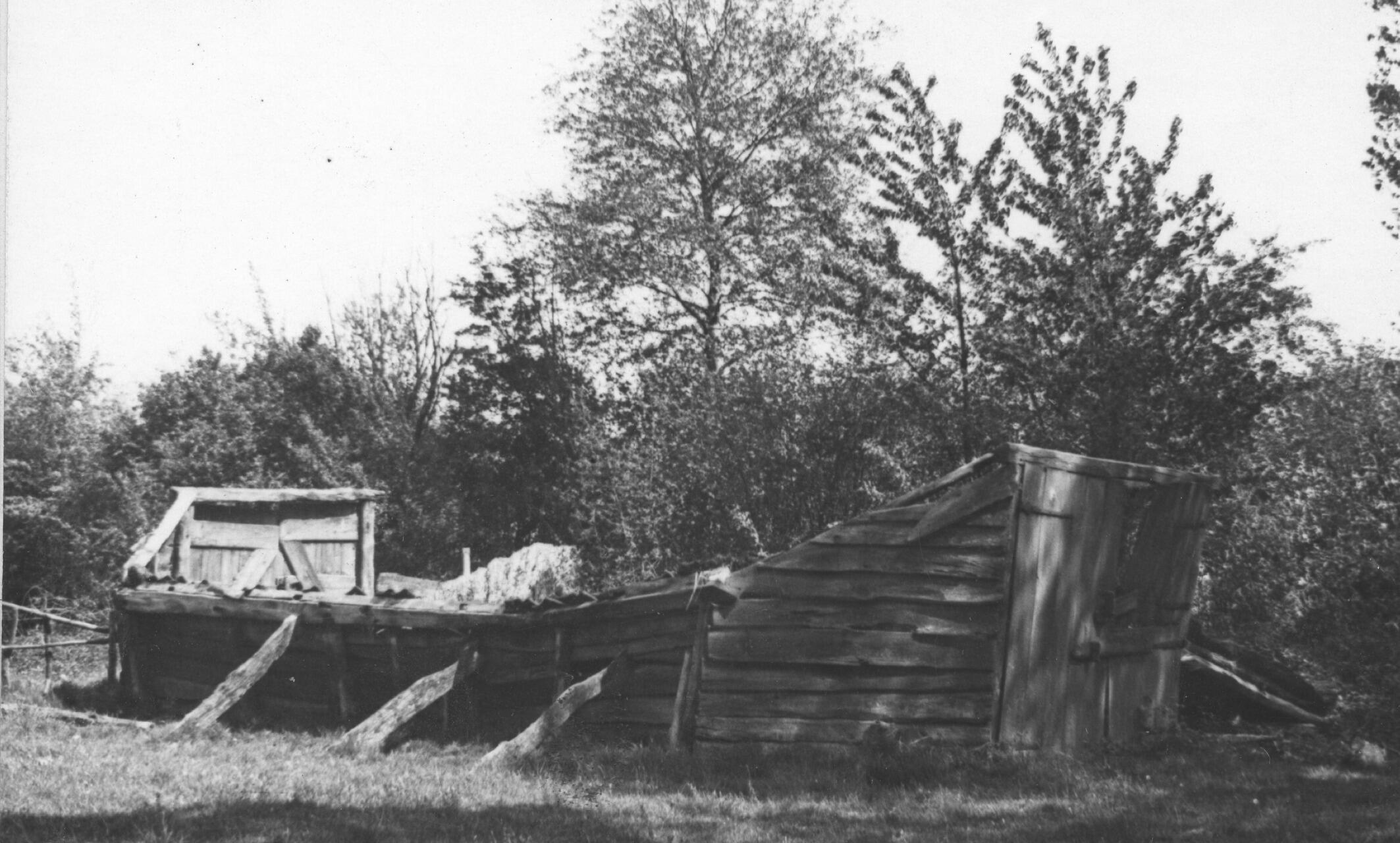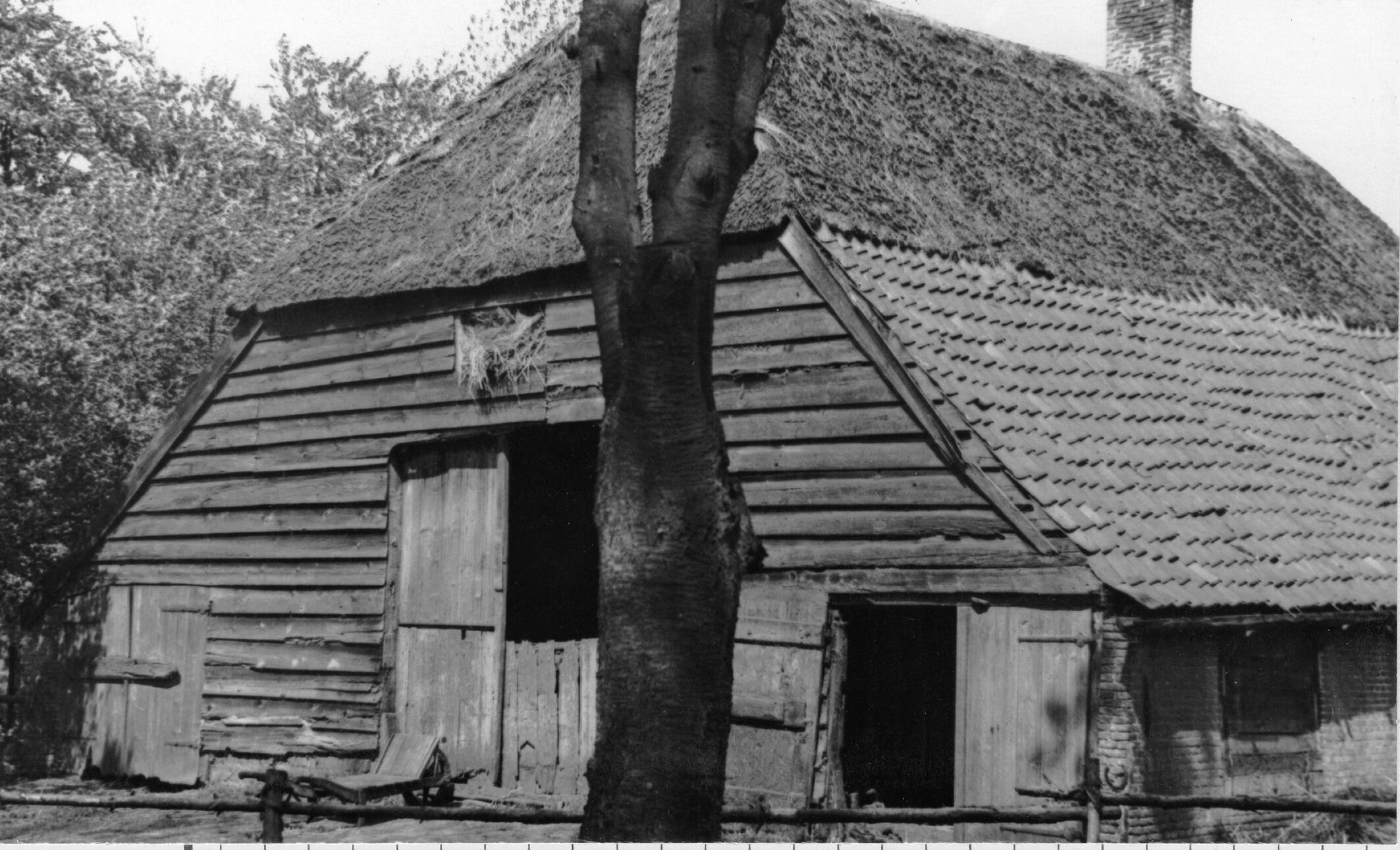 Houten schuur, De Kraats, 1936 (zwart-wit foto)