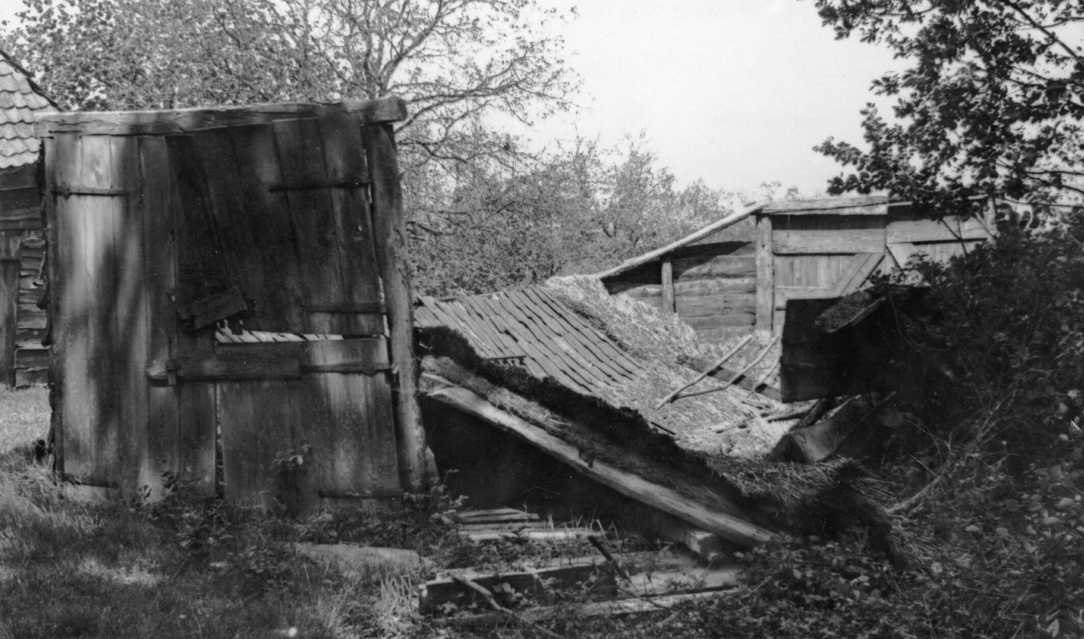 Ingevallen schaapskooi, De Kraats, 1936 (zwart-wit f...