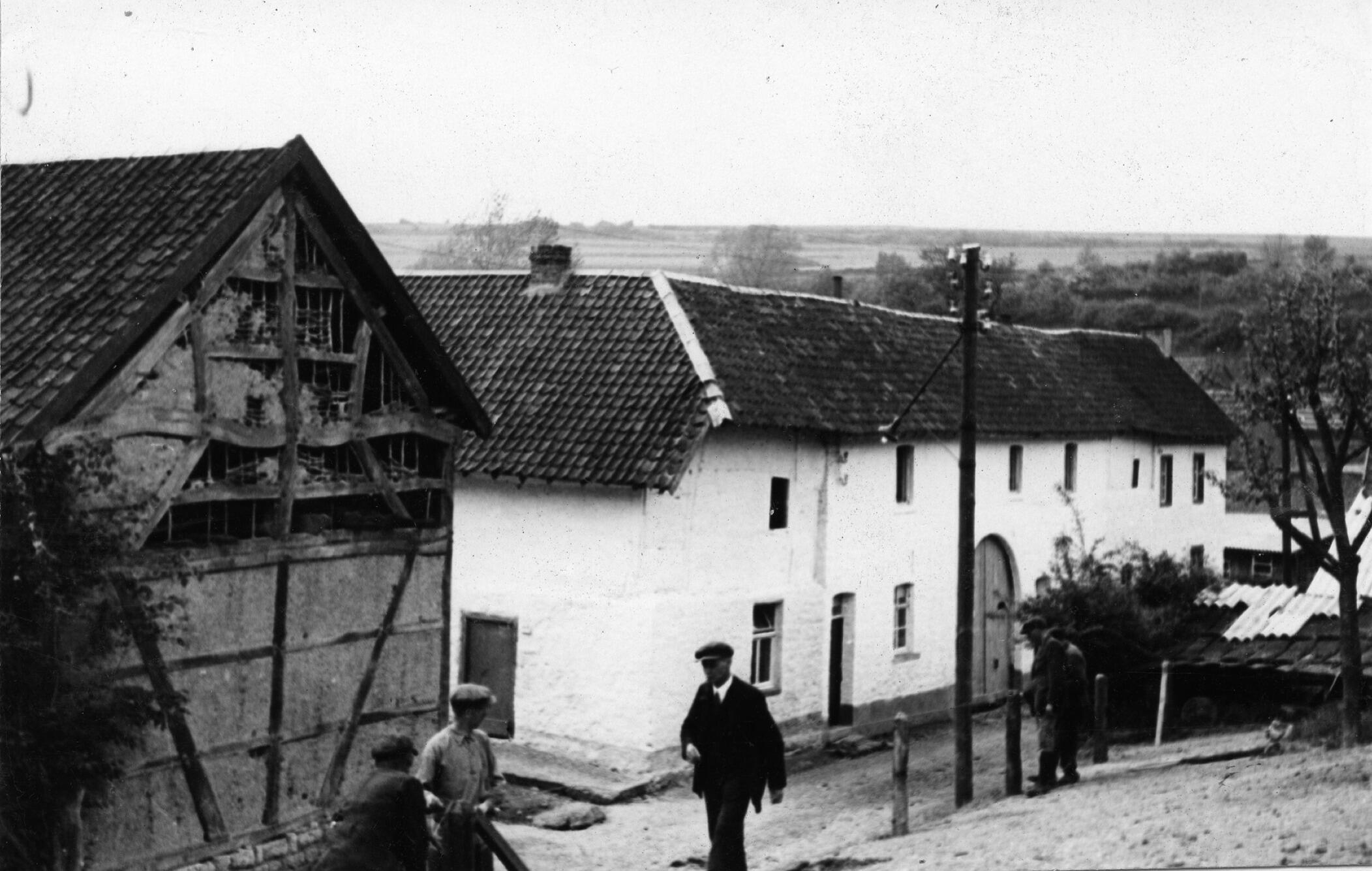 Schuur met vakwerk, Bommerig, 1937 (zwart-wit foto)