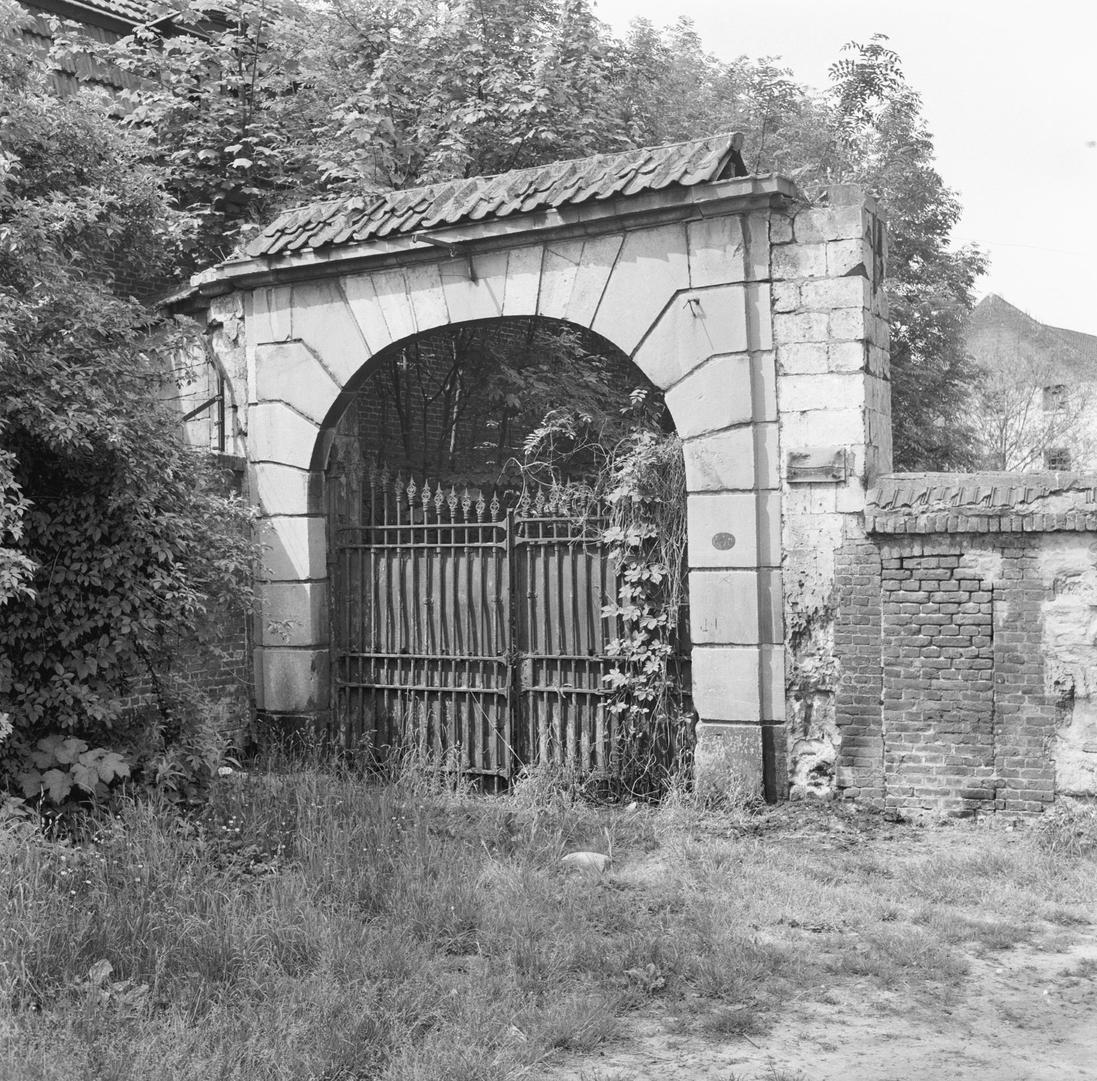 Natuurstenen muur met poort bij watermolen van Nekum