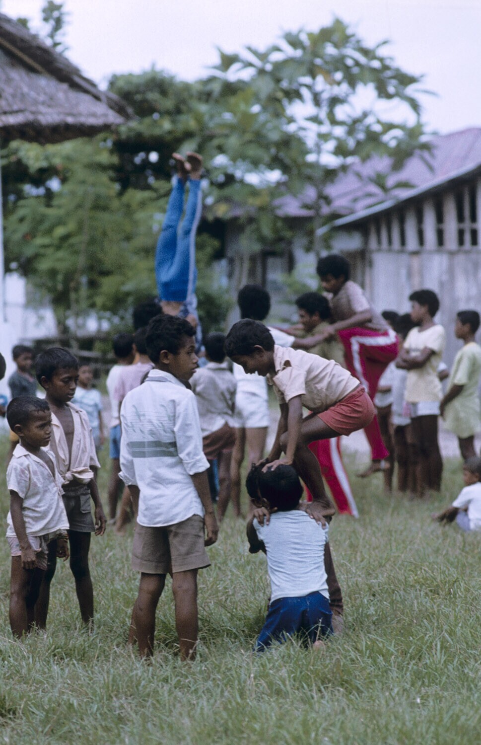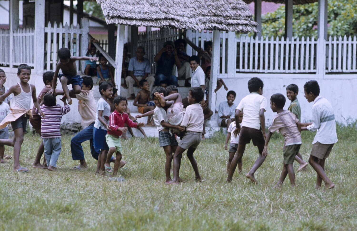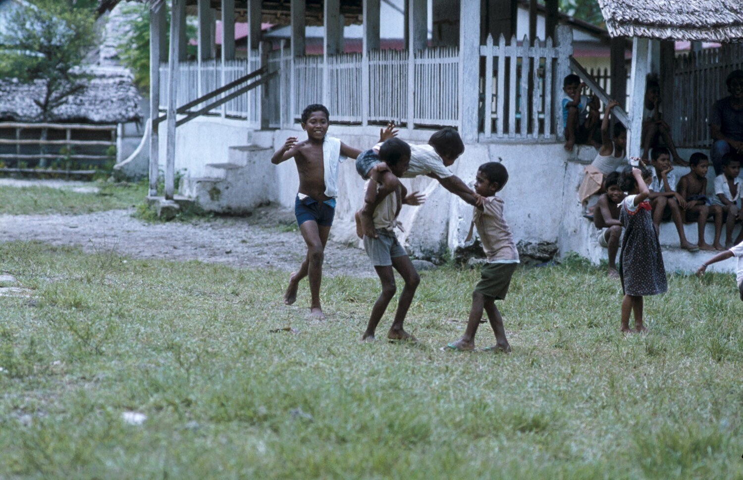 Spelende kinderen in Ullath op Saparua, Molukken.