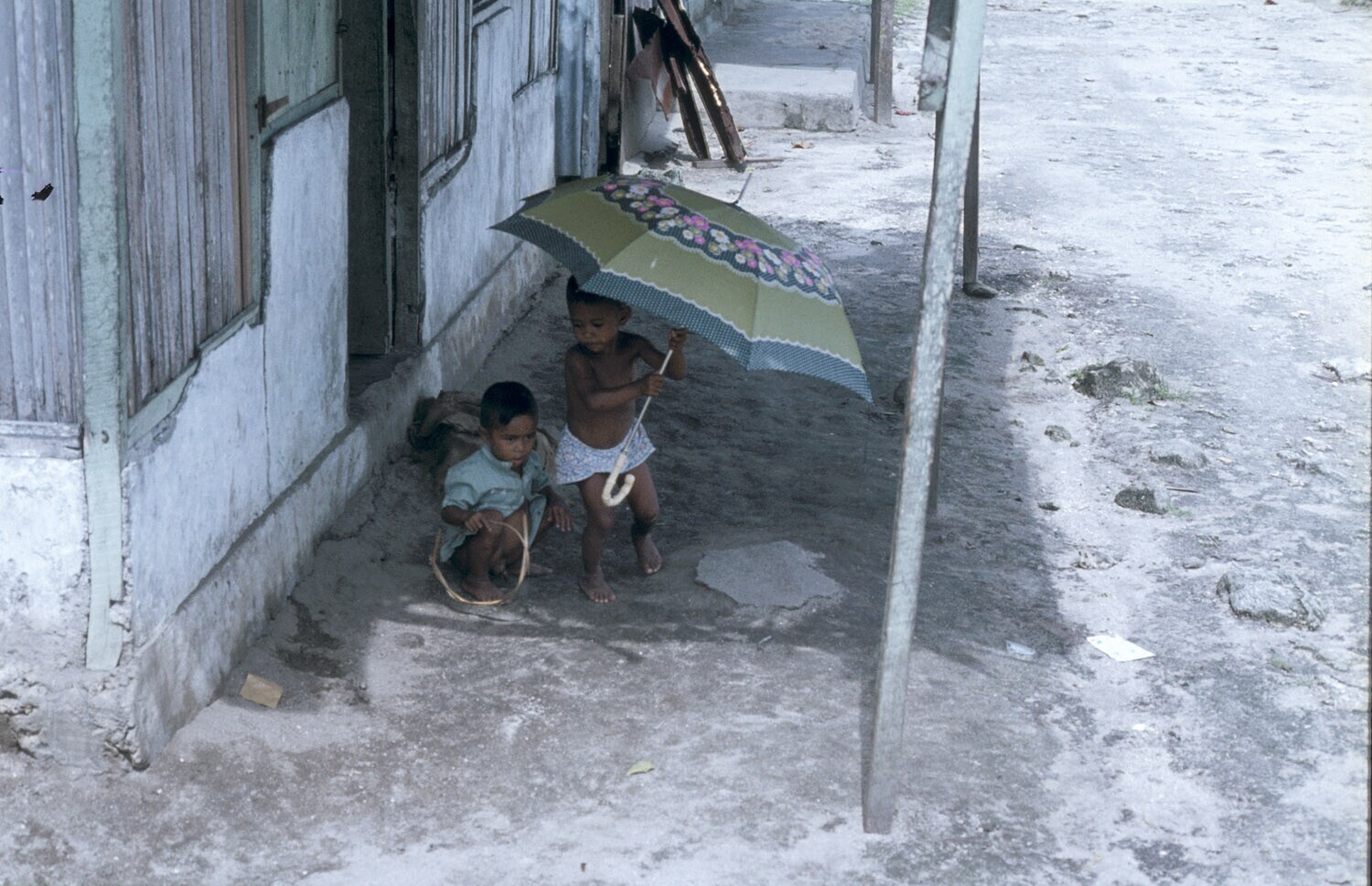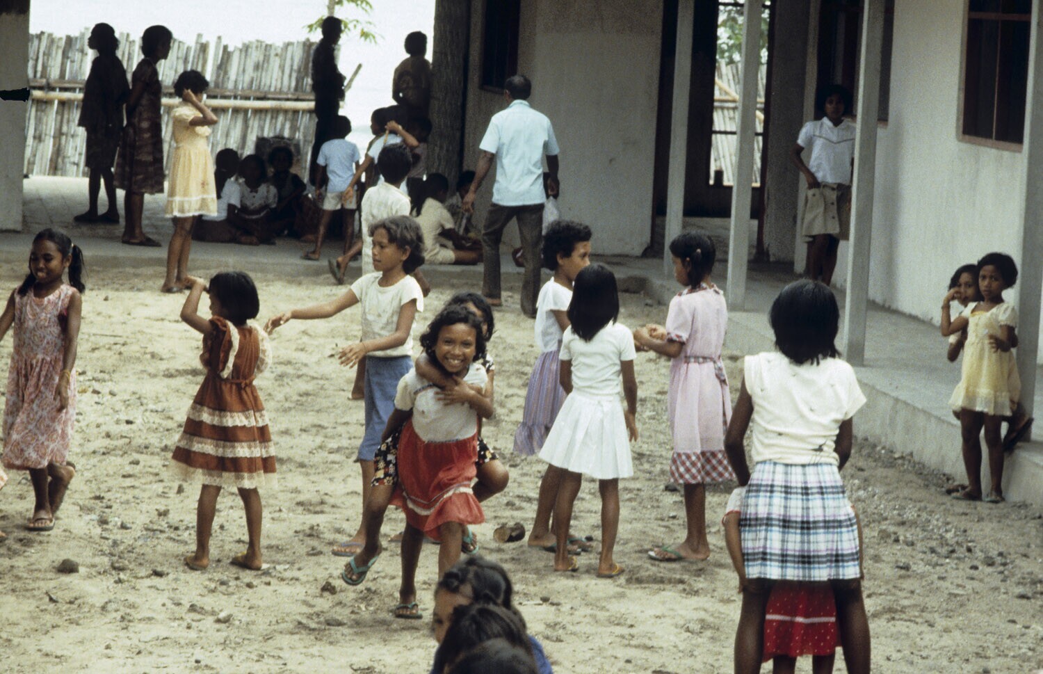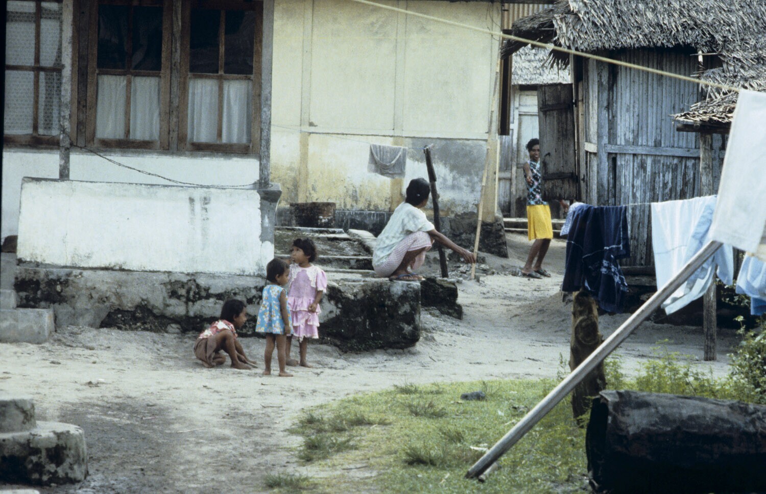 Spelende kinderen in Ullath op Saparua, Molukken.
