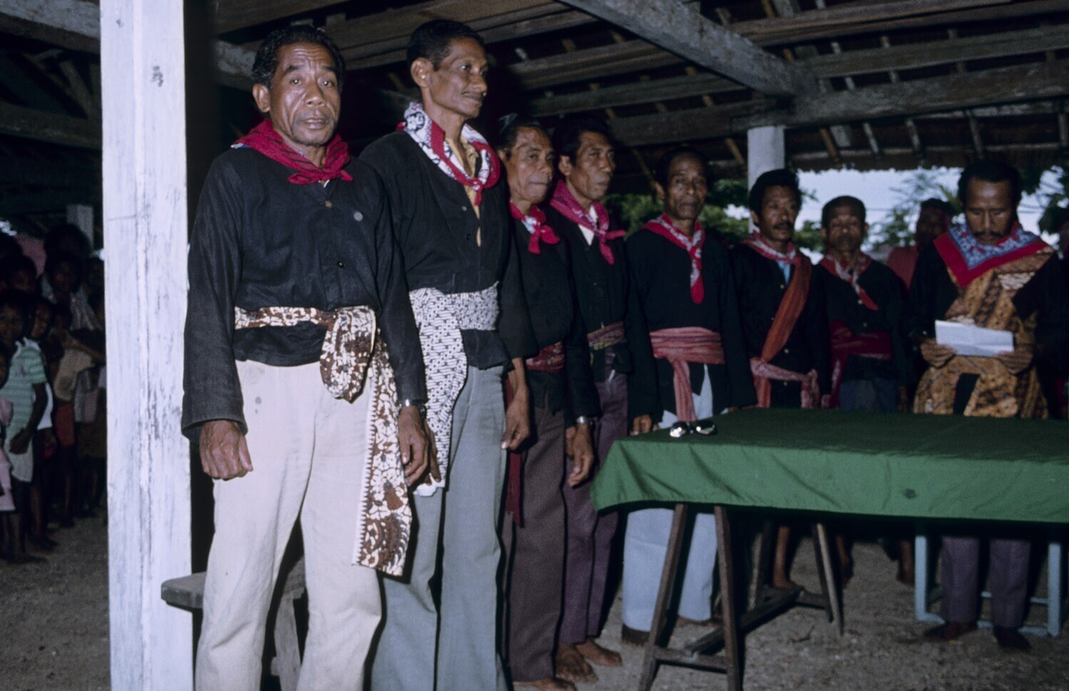 Adatkleding van de bapa jo's in Ullath op Saparua, M...