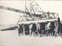 Vervoeren van een persleiding bij de bouw van de dij...