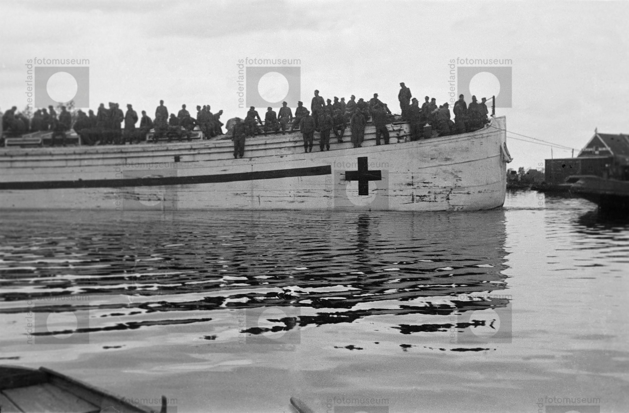 Rode Kruisschepen met Duitse krijgsgevangenen passer...