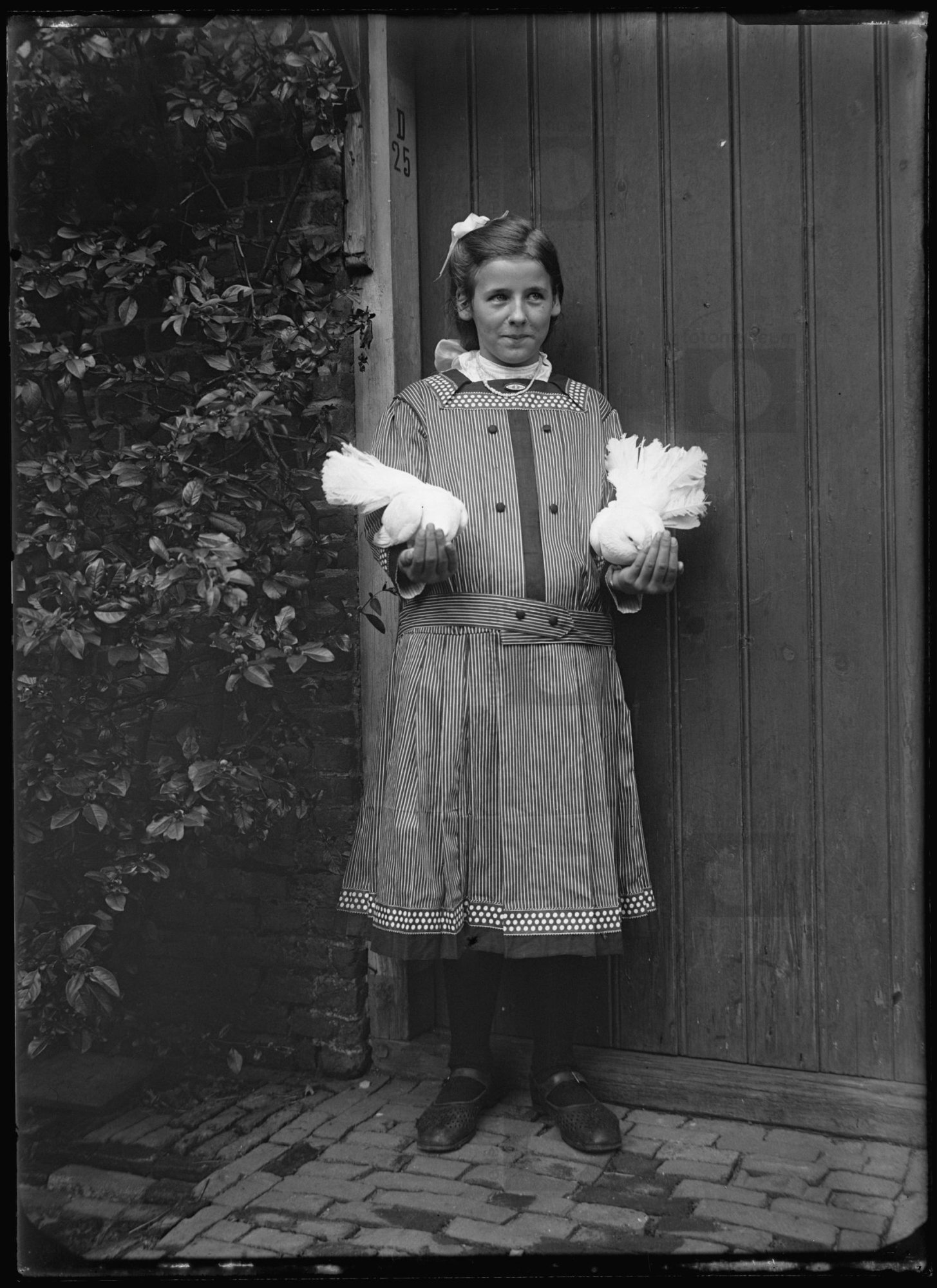 Emma Hulleman met Pauwstaarten bij de woning van haa...