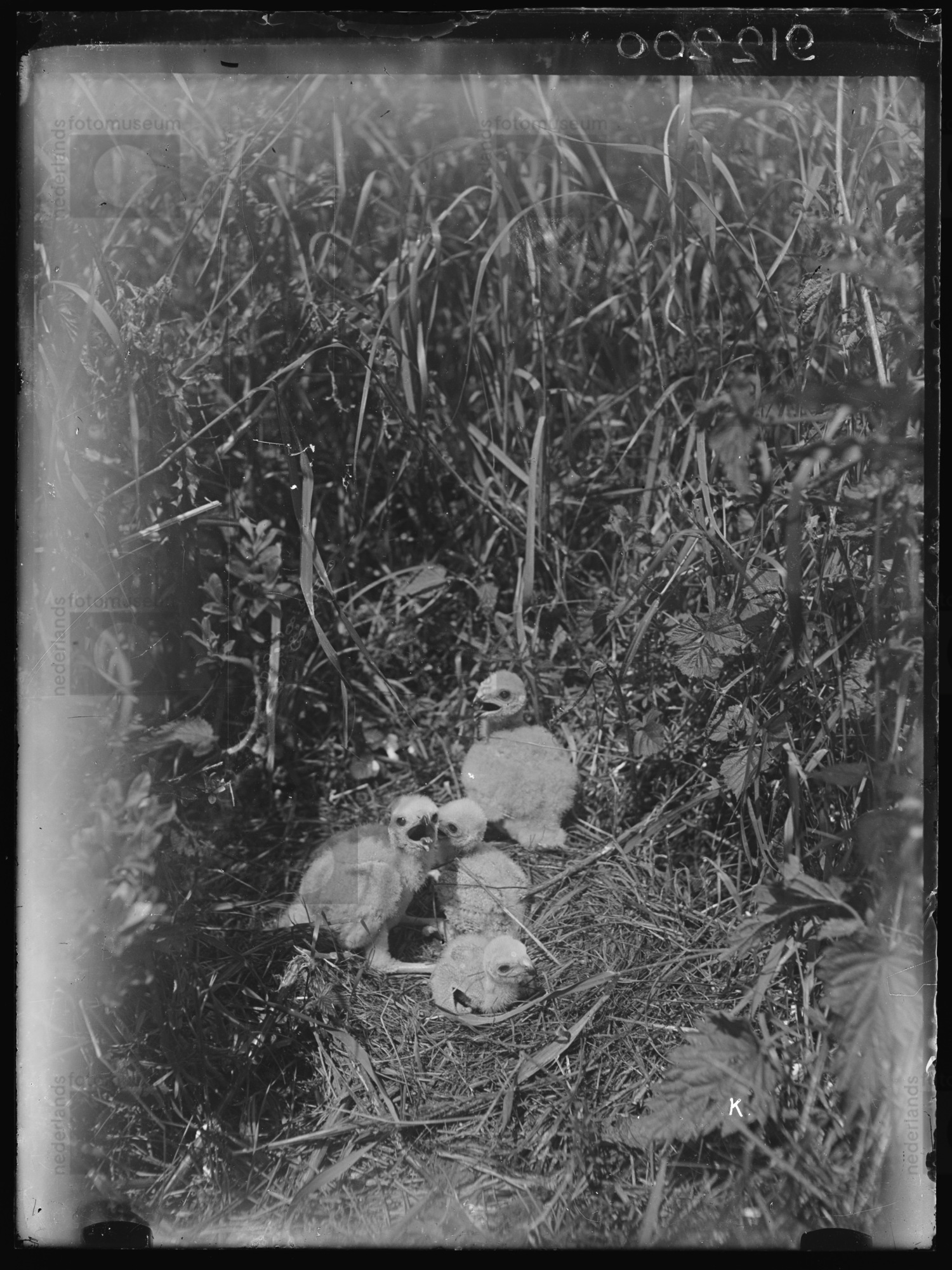 Jonge Kuifleeuweriken in nest, Heijthuijzen (1914)