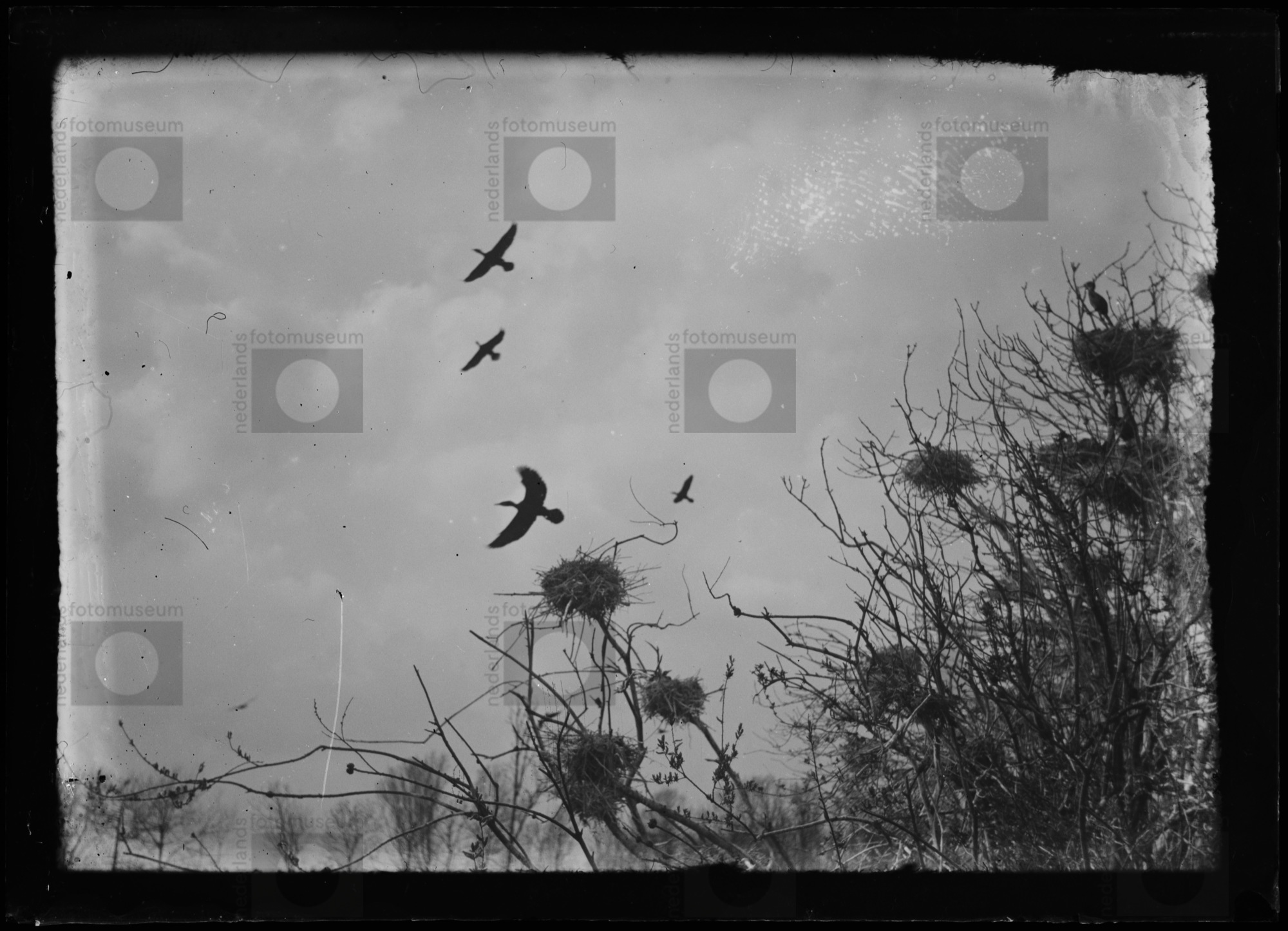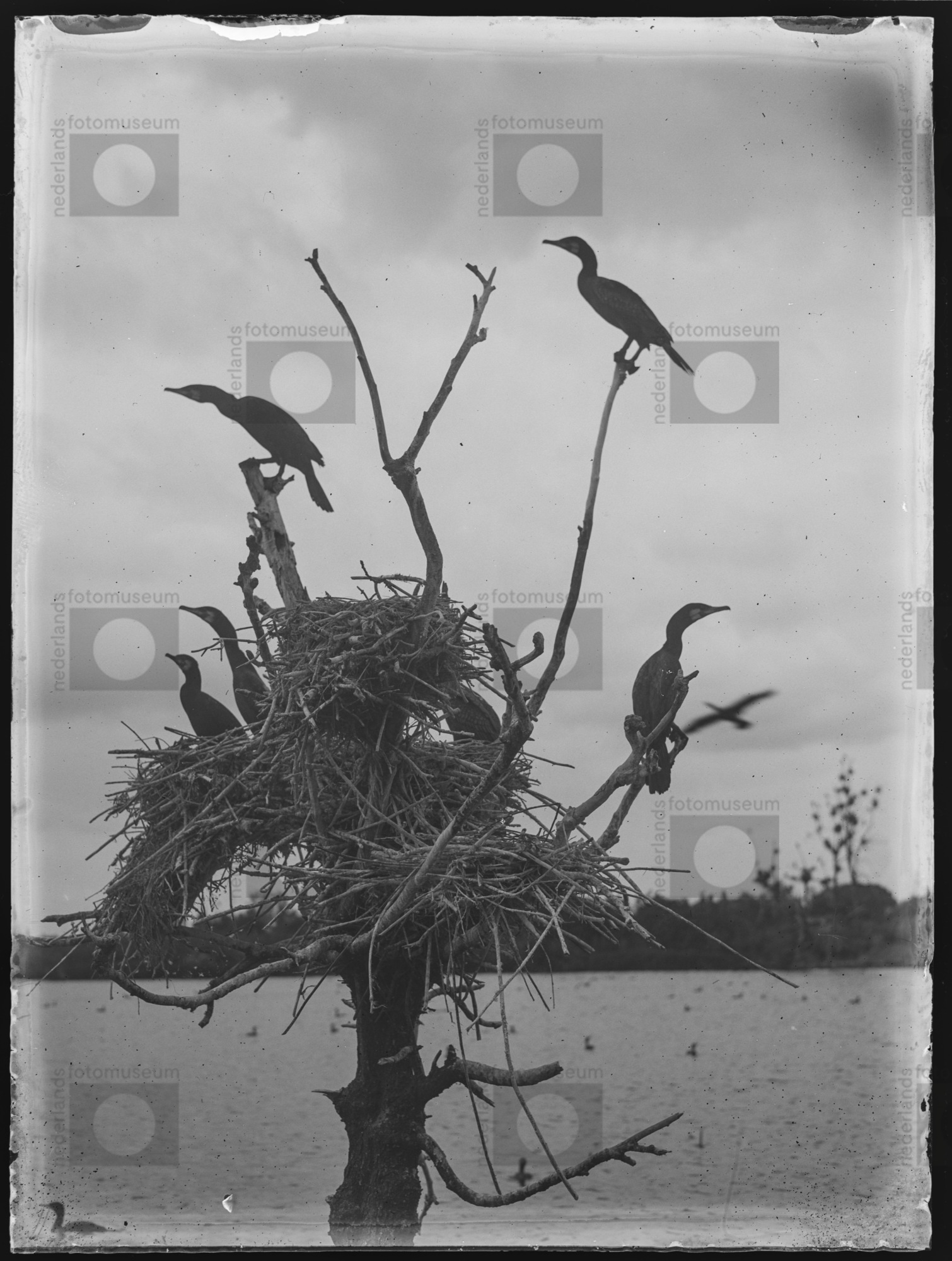 Aalscholvers bij/op hun nest, Lekkerkerk (1931)