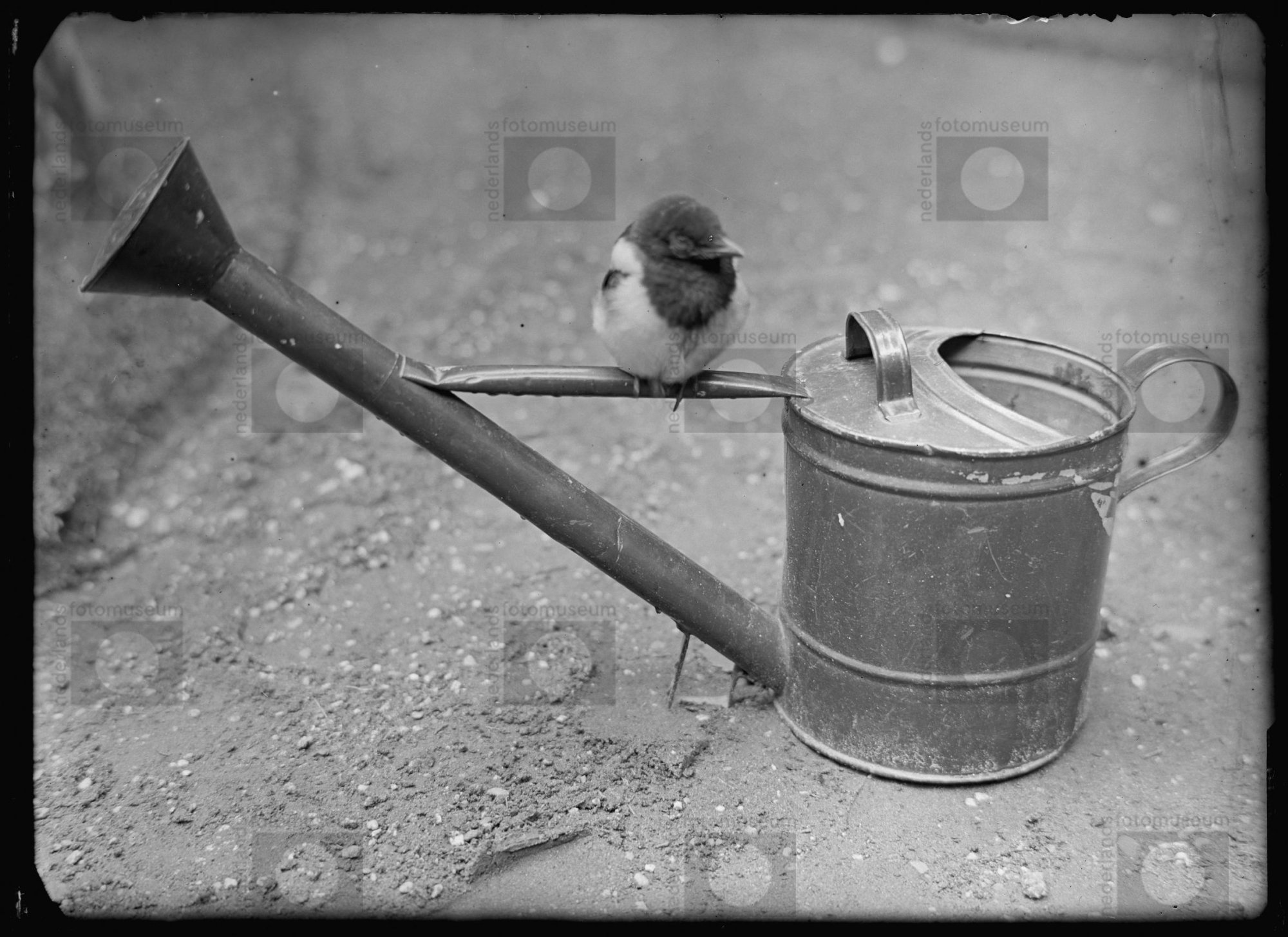 Tamme ekster op gieter in tuin van J.L.F. de Meyere,...