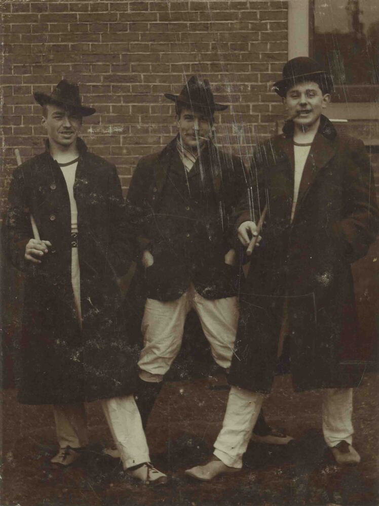 Foto, voorstellende drie heren, midden: J.B. van de ...