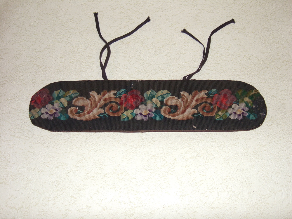 kopstuk van stoel, geborduurd door een huisvrouw; af...