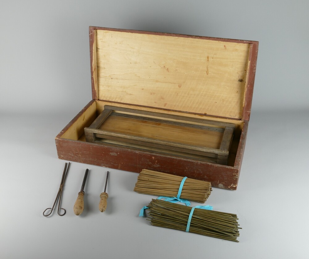 kist van hout , inhoudende gereedschap voor het ploo...