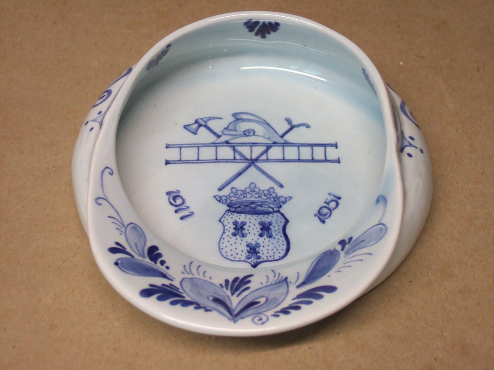Asbak van keramiek met delfts blauw decor uit 1951.