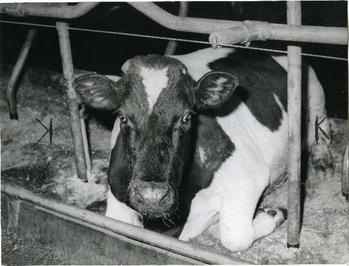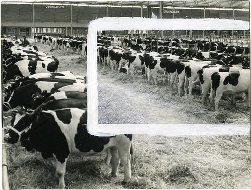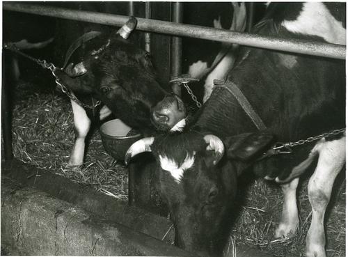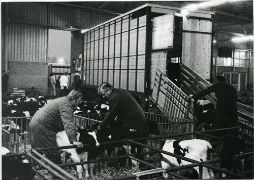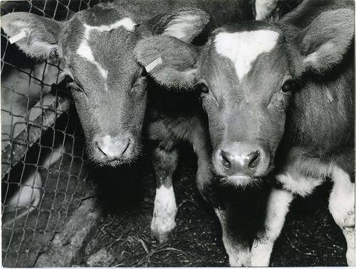 Foto in zwart-wit van kalveren door J.D. de Jong , 1978