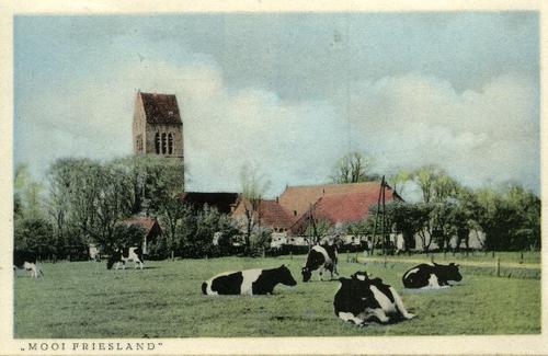 Prentbriefkaart in kleur van het gezicht op Deersum,...