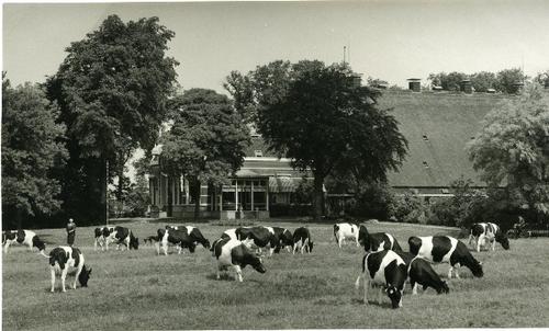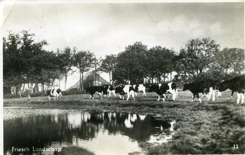 Prentbriefkaart in zwart-wit van grazende koeien in ...