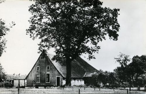 Prentbriefkaart in zwart-wit van een kop-rompboerder...