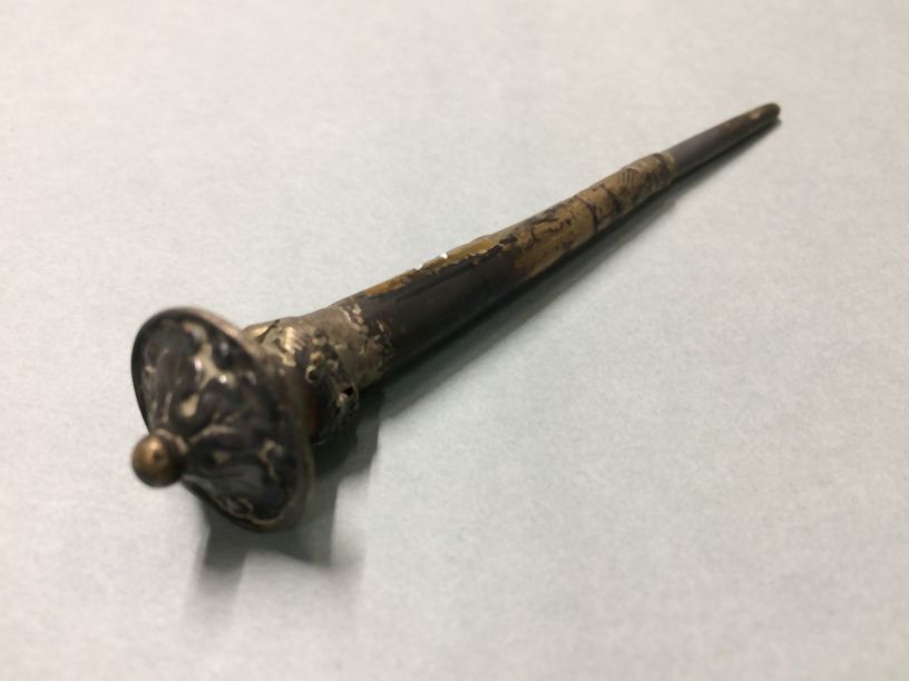 Zilveren puntbeschermer voor een schaar, met graveer...
