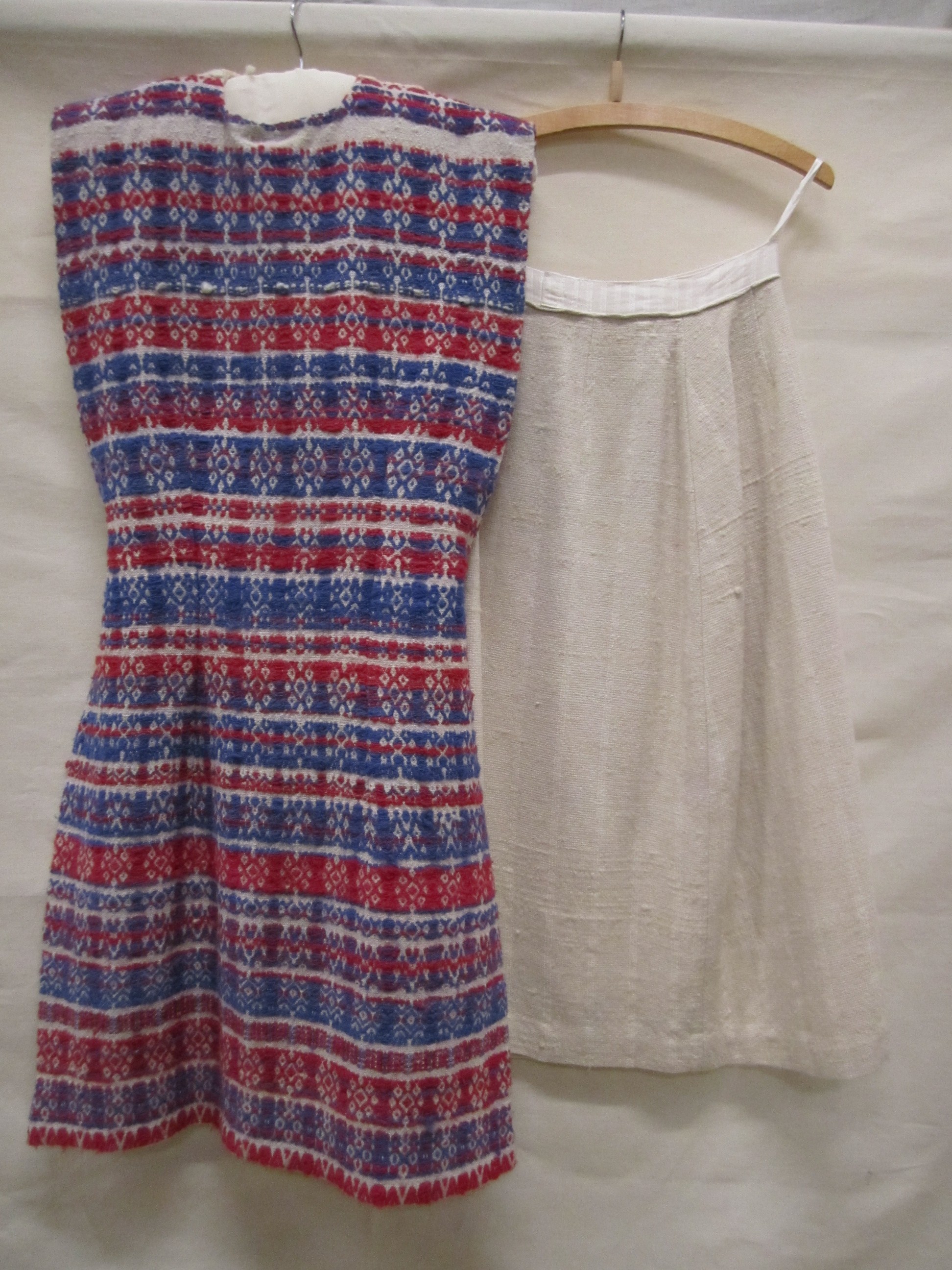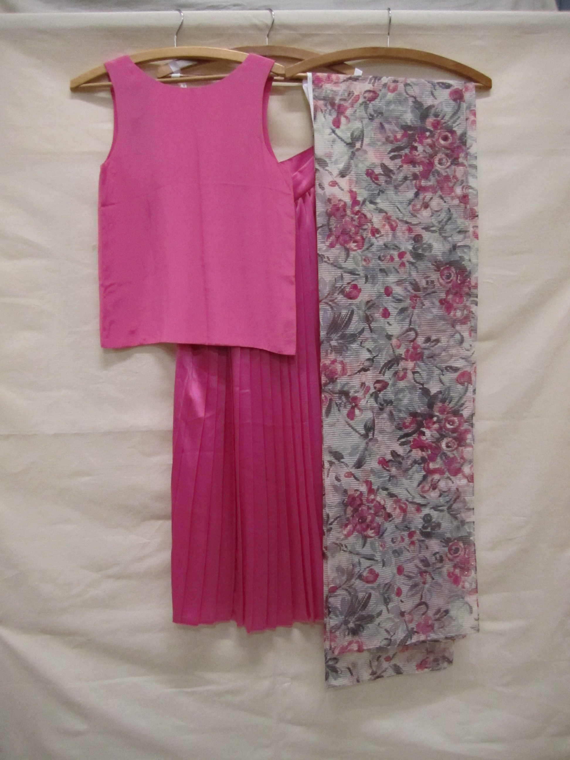 Ensemble bestaande uit blouse en broekrok met ceintuur