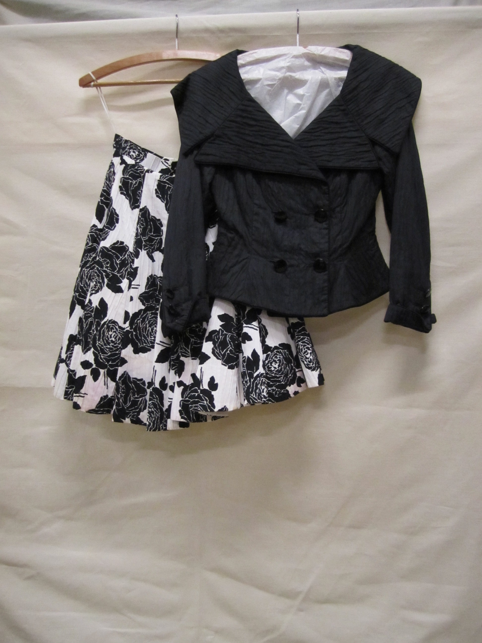Ensemble bestaande uit zwart jasje en witte rok bedr...