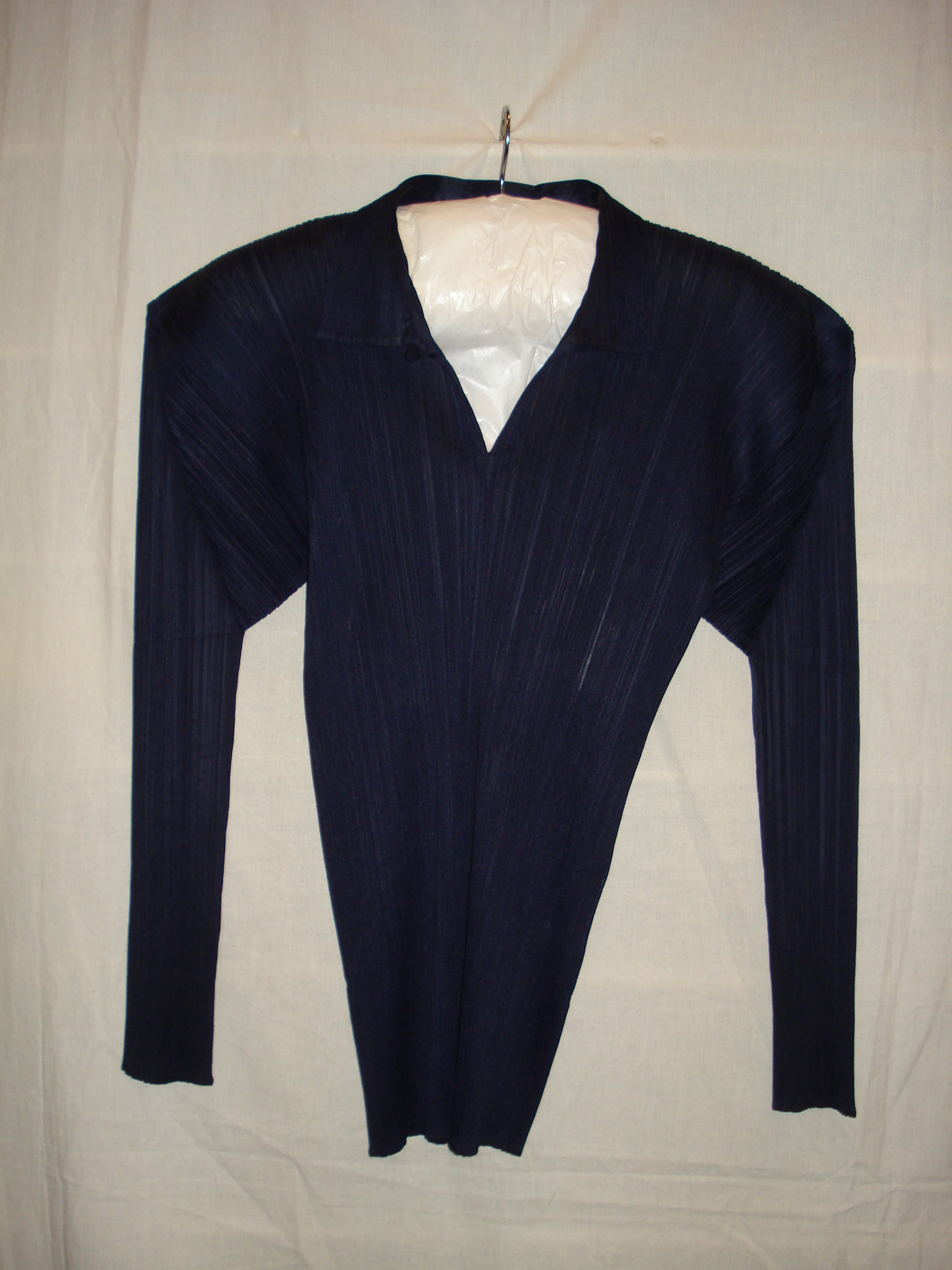 Blouse of shirt van donkerblauw geplisseerd polyester