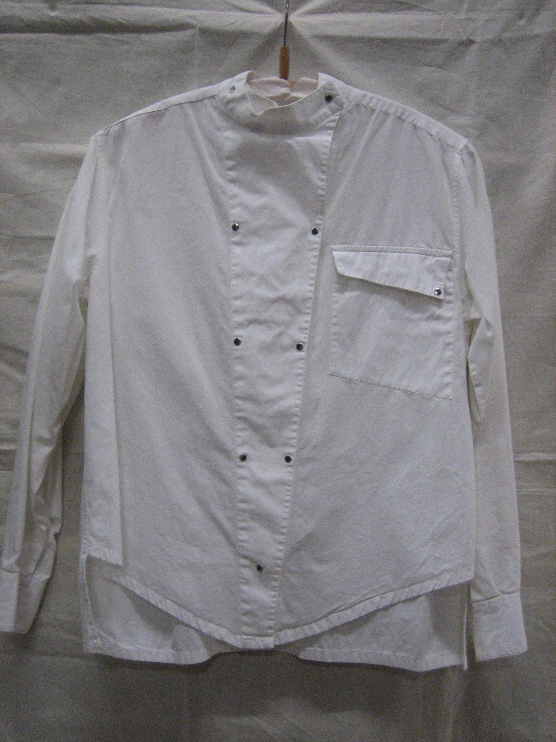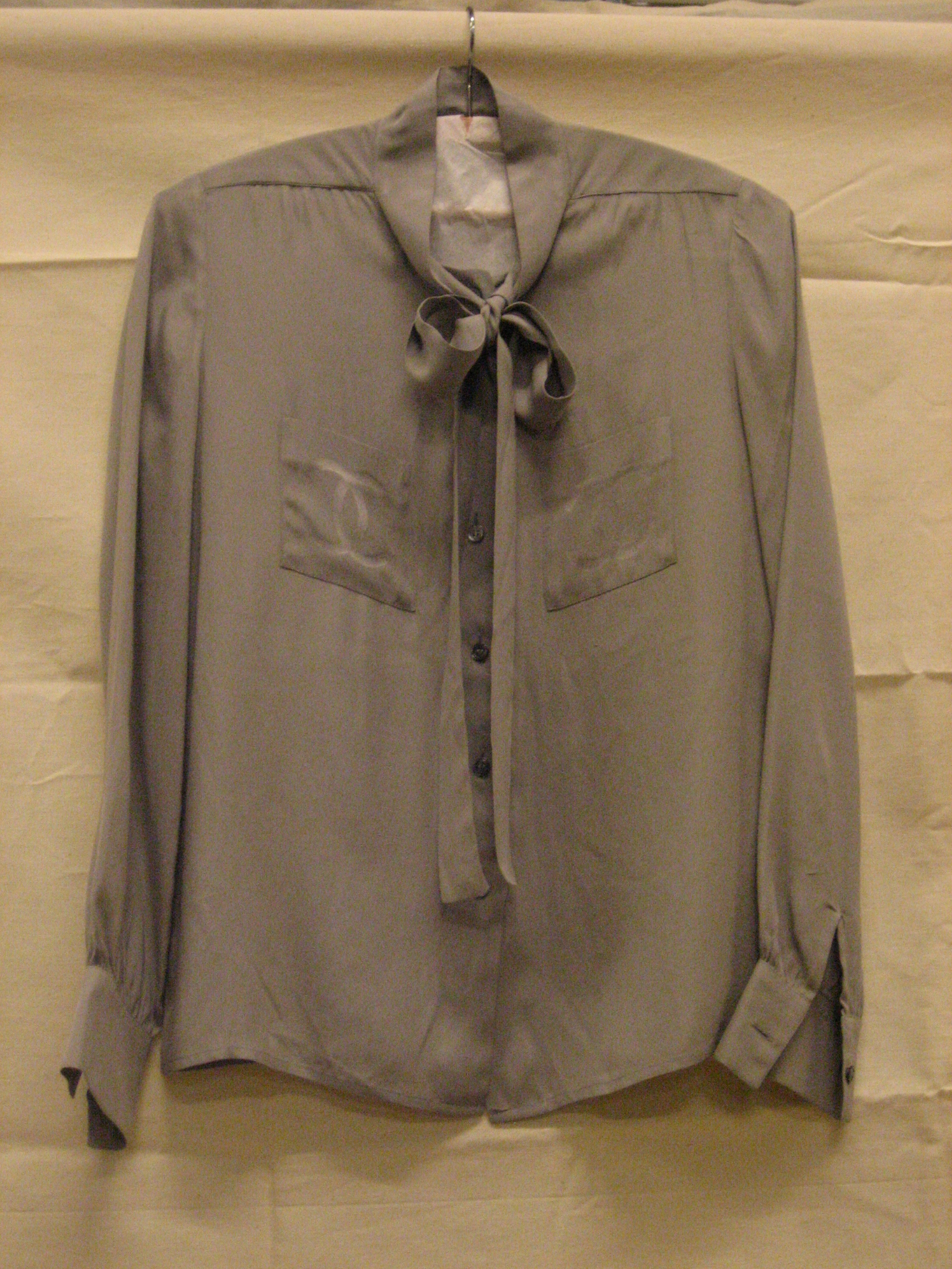 Blouse van grijze zijde met opgestikte zakken met Ch...