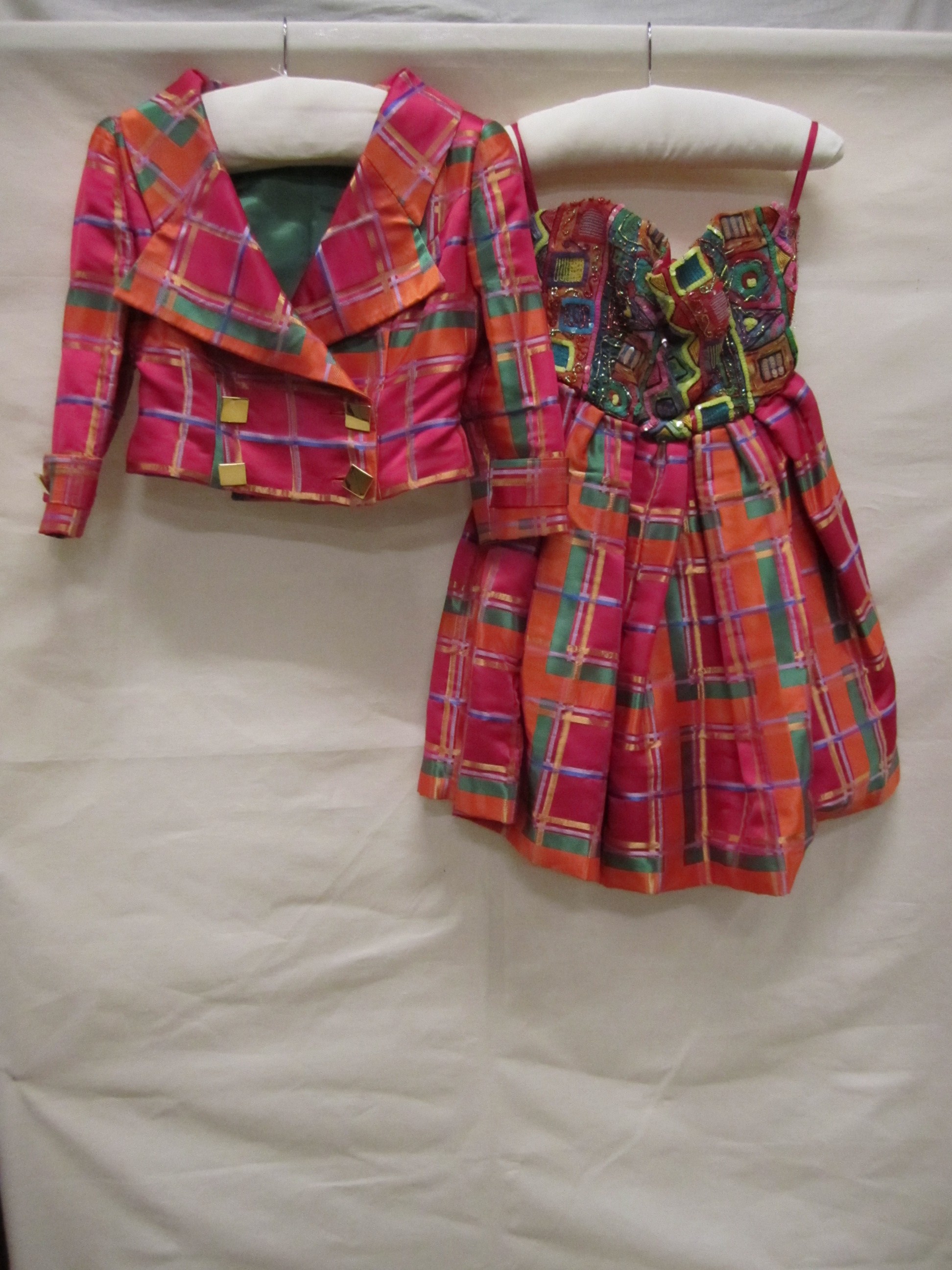 Avondensemble bestaande uit jasje en mini-jurk van f...