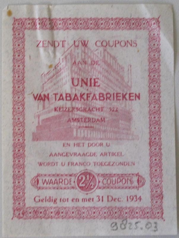Coupon uitgegeven door Unie van Tabakfabrieken 1934