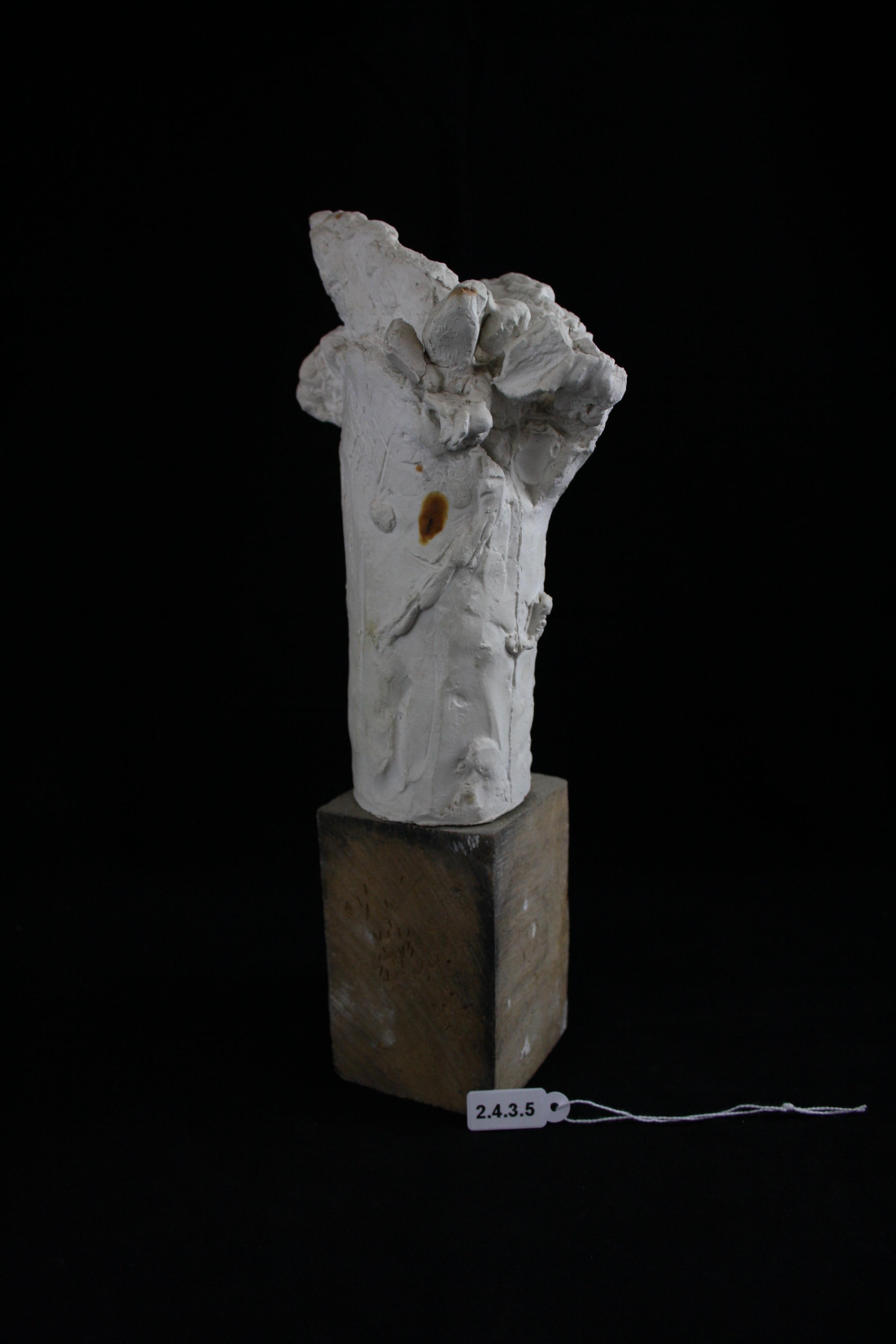 Het is gegoten door middel van een afgietsel van de torso Belvedere en omspannen met afgietsels van de huid van de kunstenaar zelf. (1)