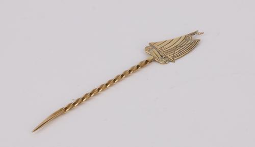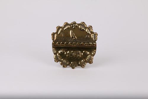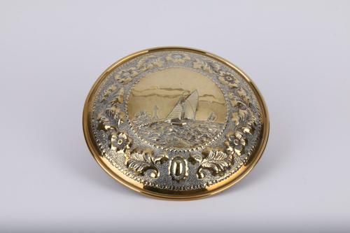Koperen tabaksdoos met zeilschip