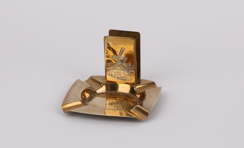 Asbak met luciferstandaard van koper