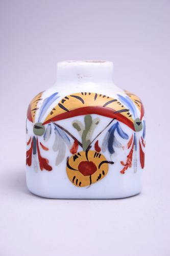 Inktpot van melkglas met bloemdecoratie
