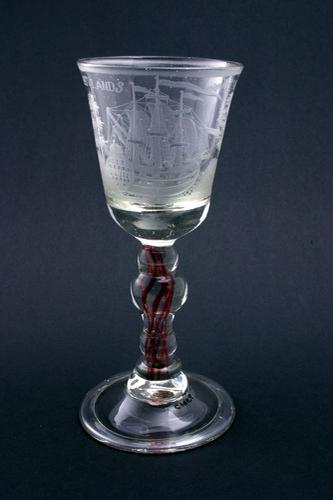 Wijnglas met gegraveerde voorstelling van een schip