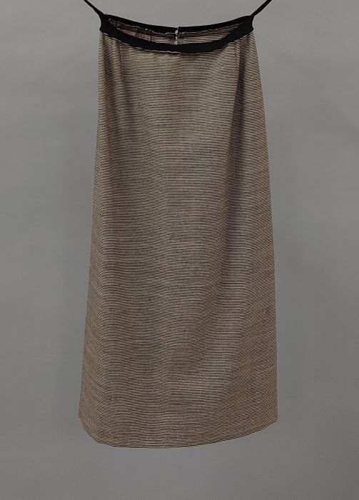 Rok van mantelpak van wit-bruin gestreepte wol, koke...