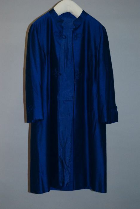 Blauwe katoenen mantel van mantelpak