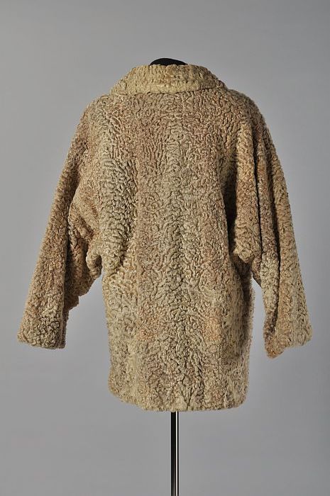 Heuplange jas van gemêleerde beige astrakan bont met...