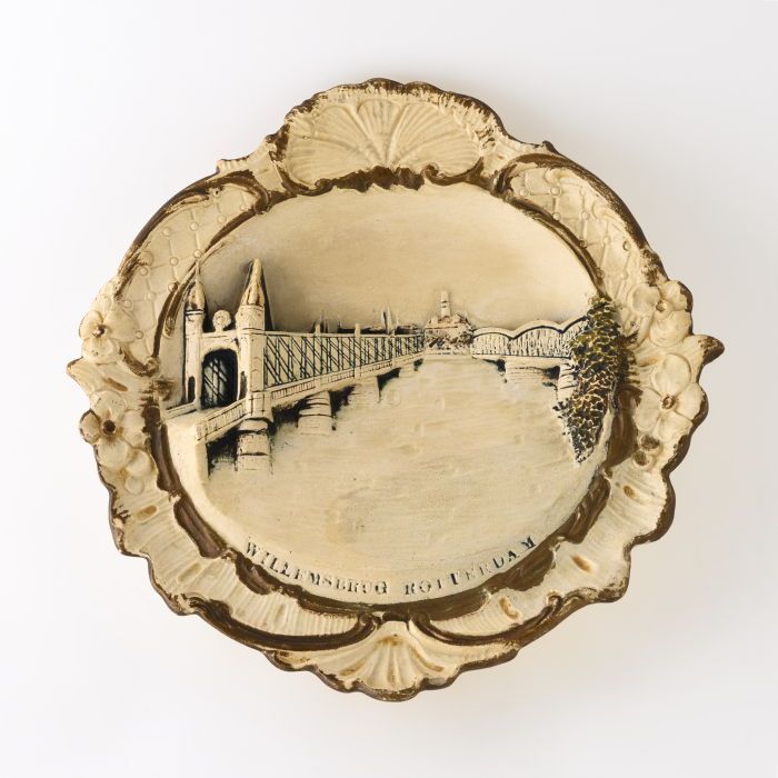 Wandbord met afbeelding van de eerste Willemsbrug in...