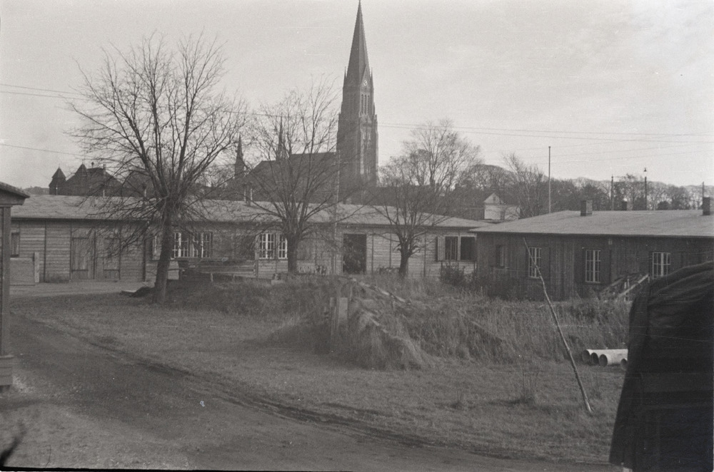 Barakken met de Dom van Schleswig in de achtergrond.