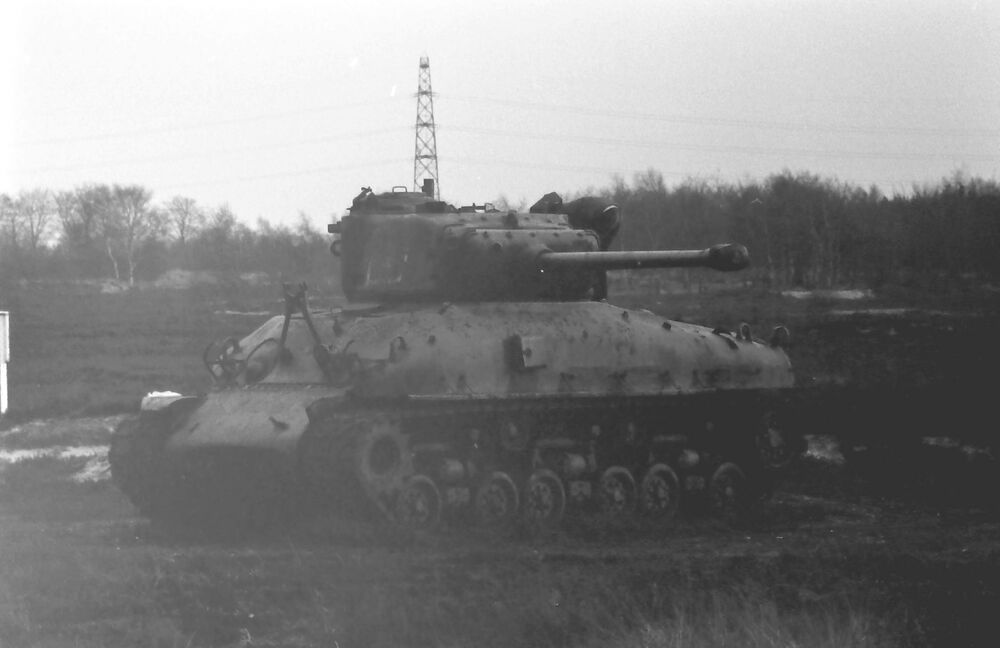 Landschapsfoto met afgedankte tank.