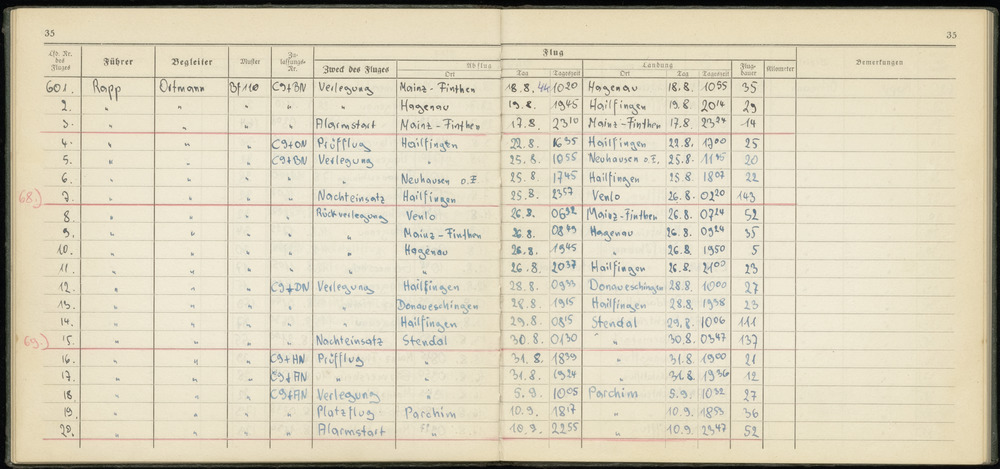 Flugbuch Hans Ortmann blad 35