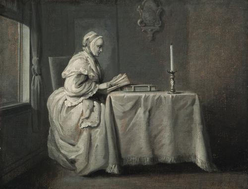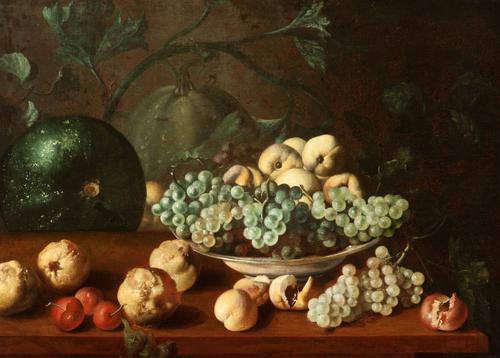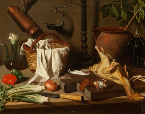 Stilleven met etenswaren, drinkgerei en een kandelaar.