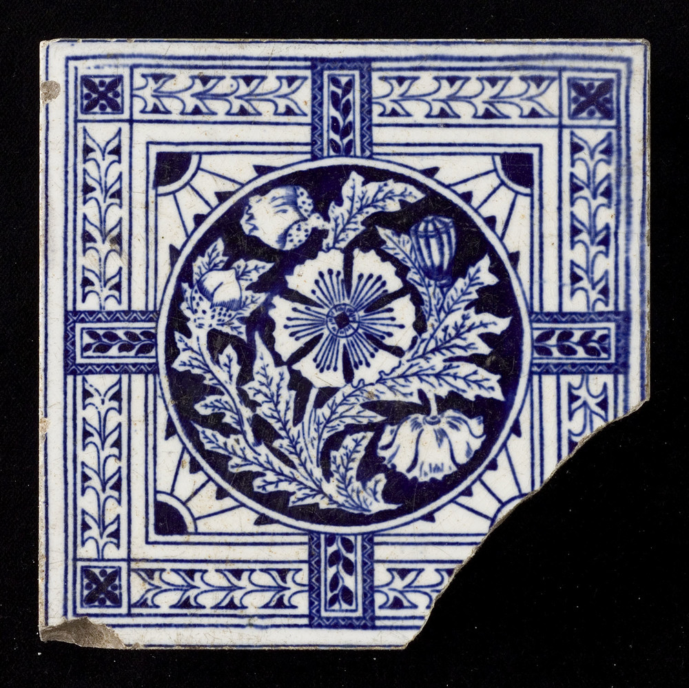 Tegel van keramiek, tinglazuur, voorstellende een bl...