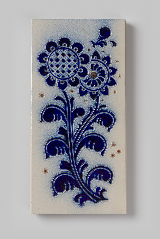 Tegel in tinglazuur, voorstellende tulp, vervaardigd...